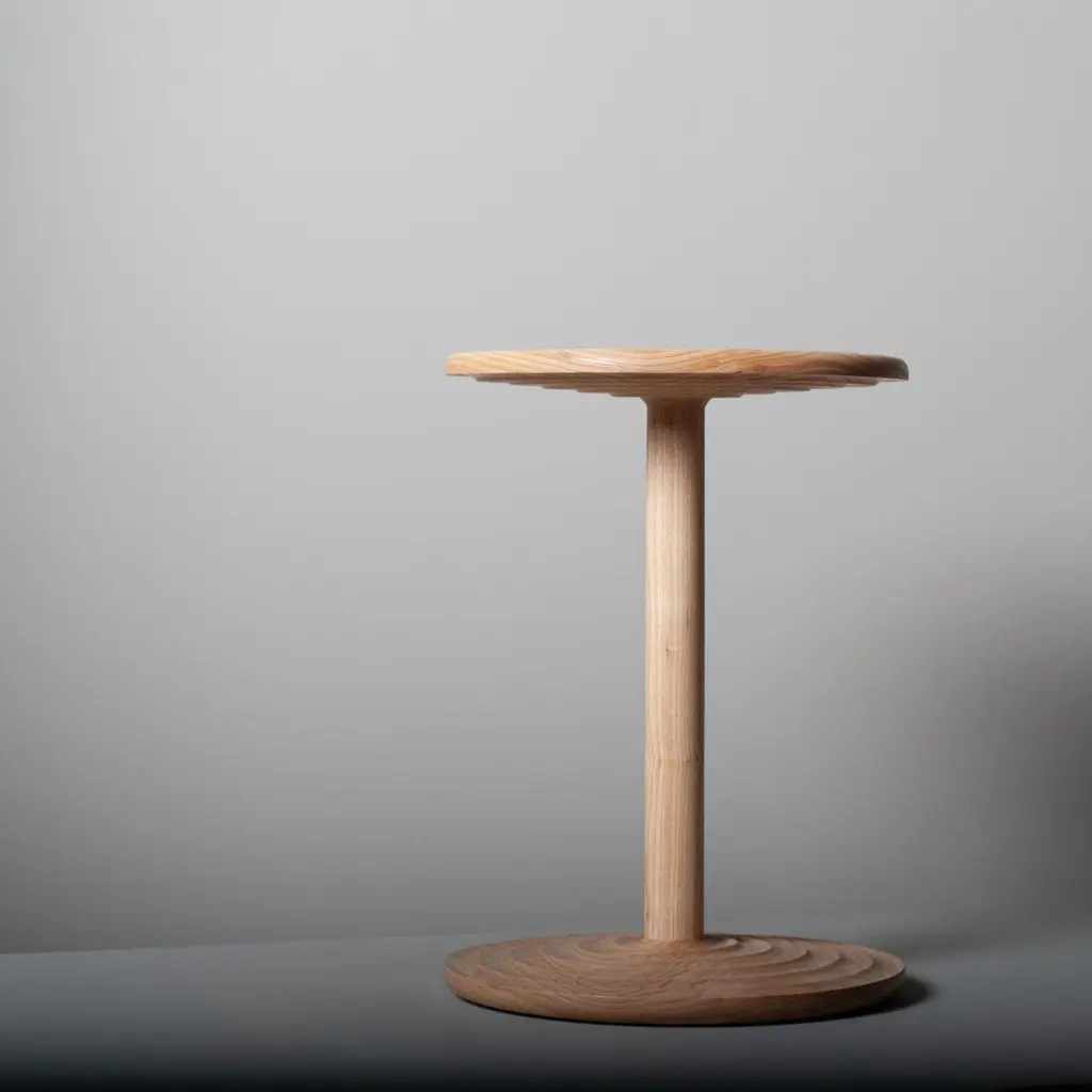 Beautifully hand-turned and handcrafted large version of our white ash rippled side table. Wonderful form and scale. This is a bespoke piece of fine quality, handmade in London by our craftsman using solid English ash timber. Other timbers are available upon request.We design bold and distinctive pieces of furniture – our main objective is combining the design alongside the natural beauty and properties of the raw materials.These timbers and materials are very carefully chosen for each specific design - maintaining our focus on the benefits, visual impact and strengths of what we use. Our regular use of English Quartersawn Oak is one case in point. It has been the beloved timber of fine furniture makers across the world for centuries. It is costly to produce but gives huge benefits and rewards such as its striking medullary rays and superb stability qualities. By utilising these wonderful and naturally occurring features with our contemporary designs we aim to continue creating some very distinct, tactile and idiosyncratic pieces.These are all completely handmade, in very small numbers, by our skilled craftspeople in England.