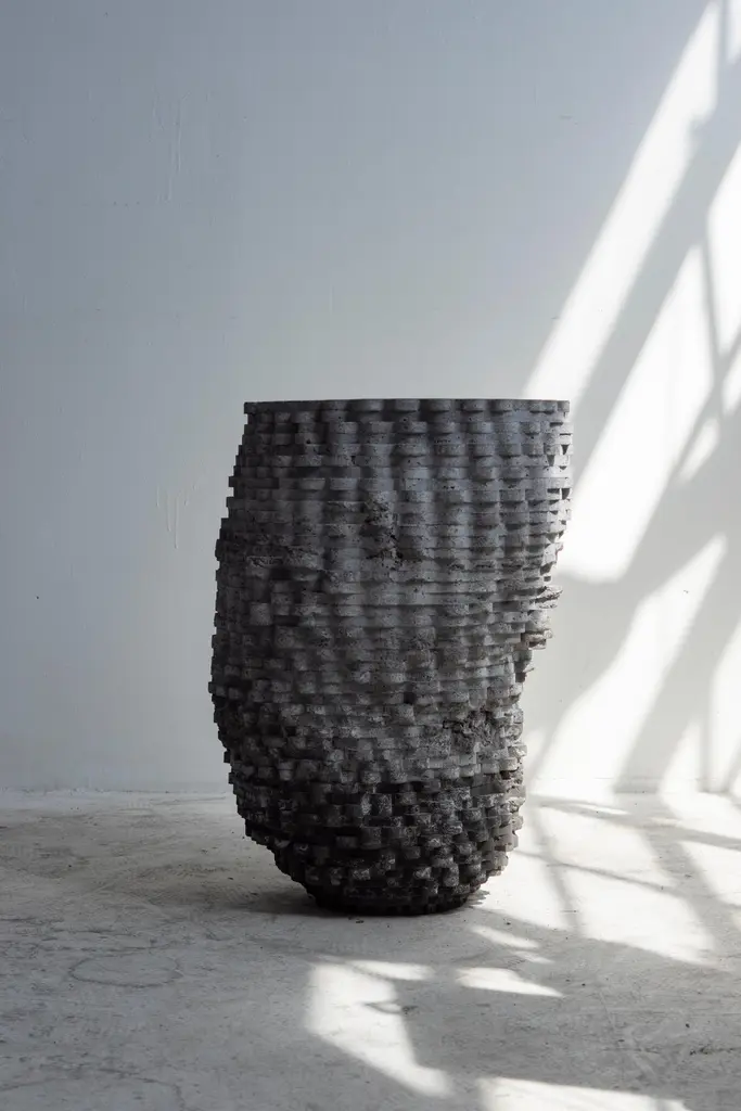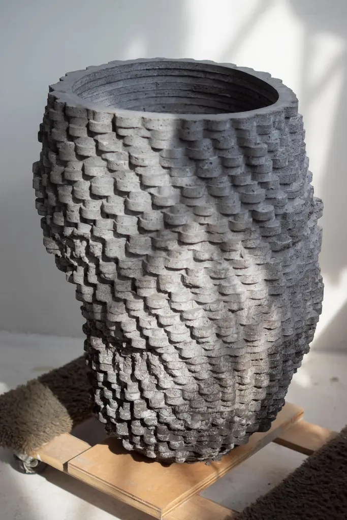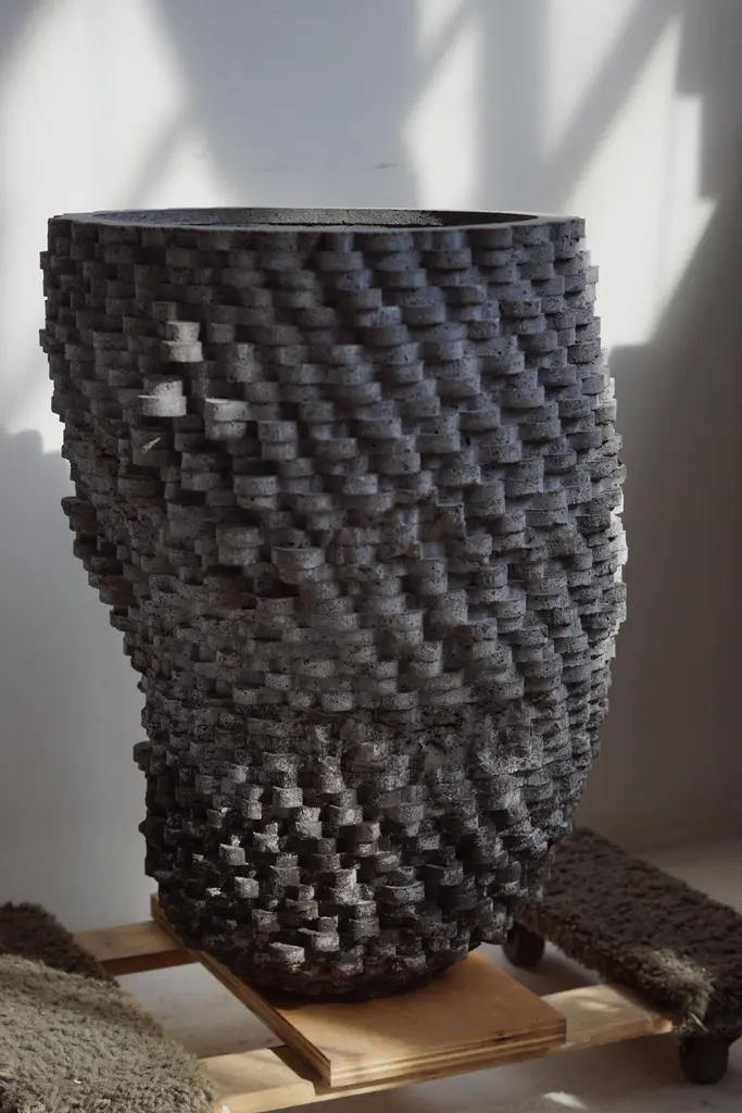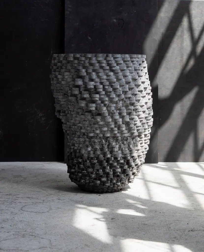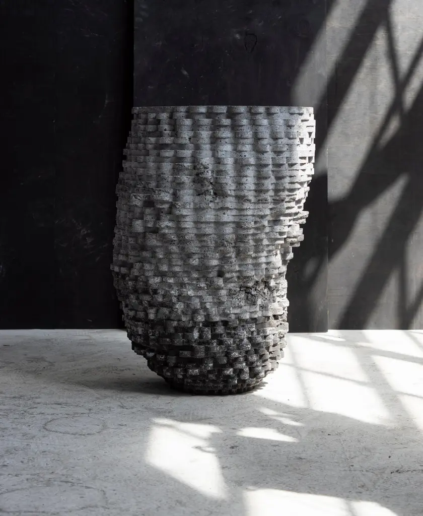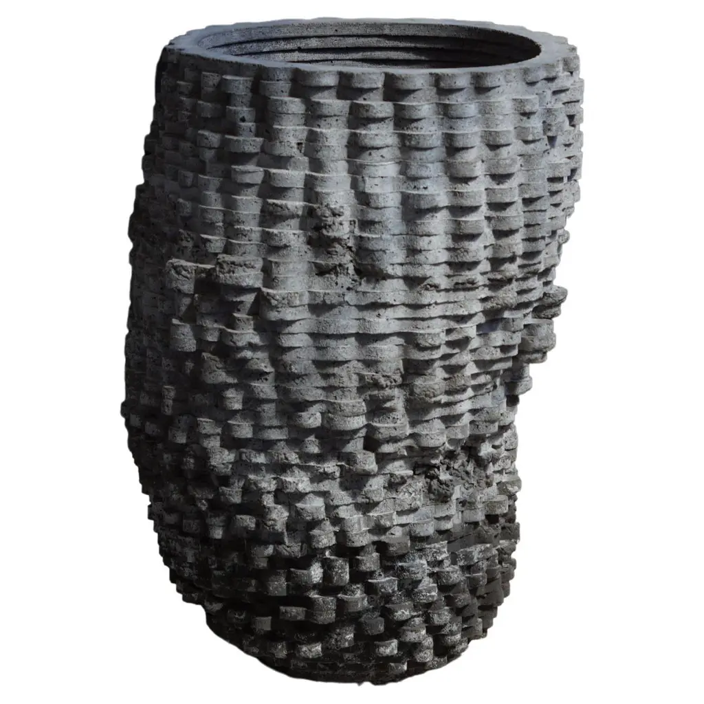 Large vessel for indoor and outdoor use. Can be made with drainage holes.At the intersection of art, craft, and design, Concrete Poetics' debut collection of hand-cast cement sculptural furniture and accessories streamlines visually intriguing and dynamic forms juxtaposing the density of the material.Raw, brutal, visceral, and striking optical qualities are embedded in the ensemble of modular candle holders, bowls, vessels, side tables, and stools, alluding to ceremonies, rituals, and celebrations.The inspiration comes within the process. The shapes, patterns, and arrangements are created intuitively, informed by nature, land, and sea, to then later be articulated, making them suitable for casting. Ultimately exhilarated by the wabi-sabi sensibility, the urban and industrial surroundings, the final result is very organic, embracing the irregularity and the imperfection that makes every piece exceptional.THESE PIECES ARE NOT MASS-PRODUCED. THEY ARE HANDMADE LOCALLY IN NEW YORK CITY, ON-DEMAND OR SMALL-BATCH, USING ARTISANAL MOLD-MAKING AND CASTING TECHNIQUES. THEY ARE SUSCEPTIBLE TO INACCURACY AND DEVIATION DURING THE MAKING OF THE CASTS. THEREFORE THE EXECUTED PIECES ARE NOT IDENTICAL TO THOSE SHOWN IN THE PICTURES. IMPERFECTION AND UNIQUENESS ARE EMBRACED AND EMBOLDENED AS PART OF THE CREATIVE PROCESS AND AN INTRINSIC PART OF THE BRAND'S IDENTITY.