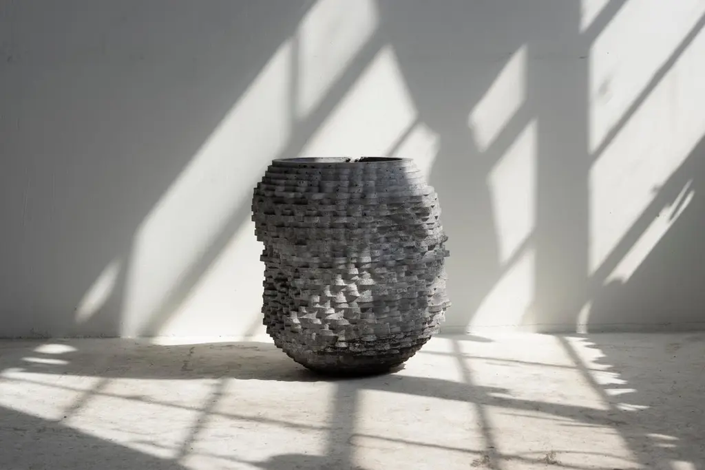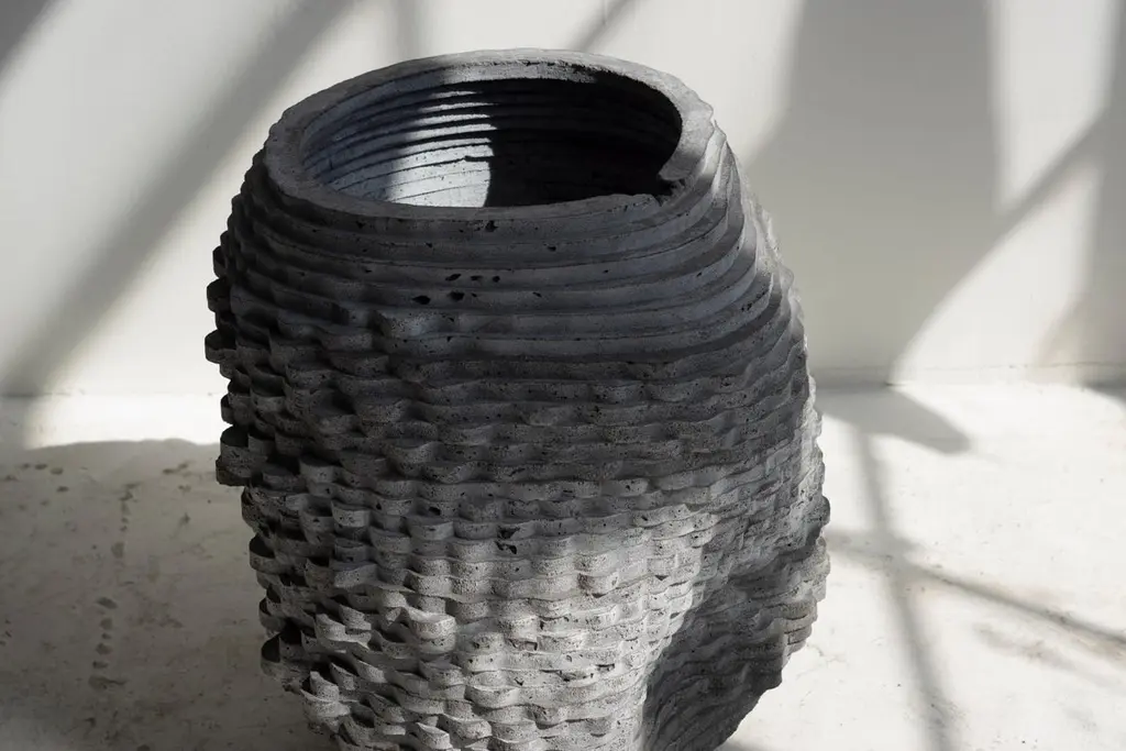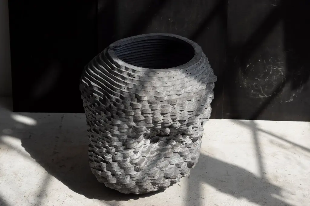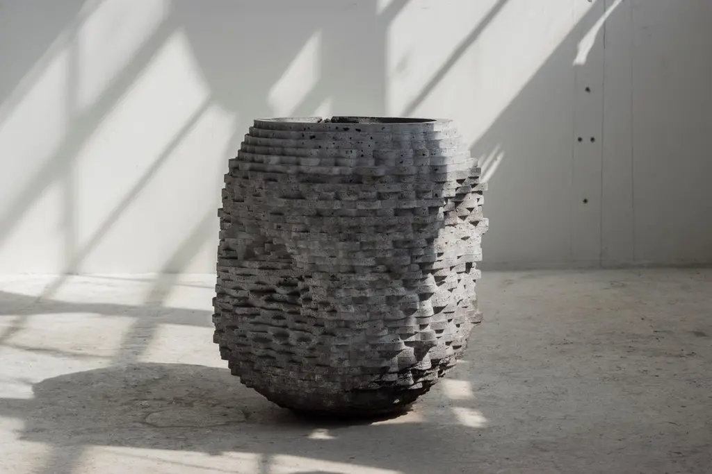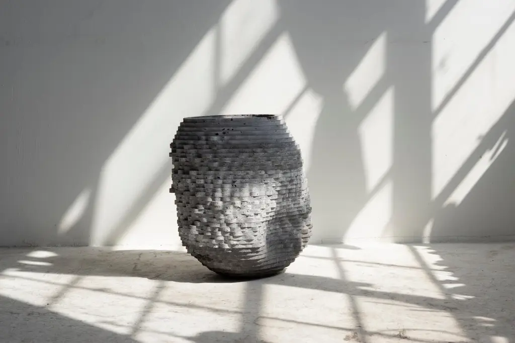 Large hand-cast vessel for indoor and outdoor use. Drainage holes can be added.At the intersection of art, craft, and design, Concrete Poetics' debut collection of hand-cast cement sculptural furniture and accessories streamlines visually intriguing and dynamic forms juxtaposing the density of the material.Raw, brutal, visceral, and striking optical qualities are embedded in the ensemble of modular candle holders, bowls, vessels, side tables, and stools, alluding to ceremonies, rituals, and celebrations.The inspiration comes within the process. The shapes, patterns, and arrangements are created intuitively, informed by nature, land, and sea, to then later be articulated, making them suitable for casting. Ultimately exhilarated by the wabi-sabi sensibility, the urban and industrial surroundings, the final result is very organic, embracing the irregularity and the imperfection that makes every piece exceptional.These pieces are not mass-produced. they are handmade locally in New York city, on-demand or small-batch, using artisanal mold-making and casting techniques. they are susceptible to inaccuracy and deviation during the making of the casts. therefore the executed pieces are not identical to those shown in the pictures. imperfection and uniqueness are embraced and emboldened as part of the creative process and an intrinsic part of the brand's identity.