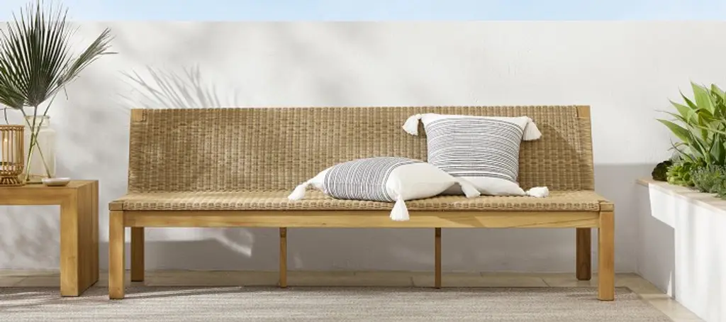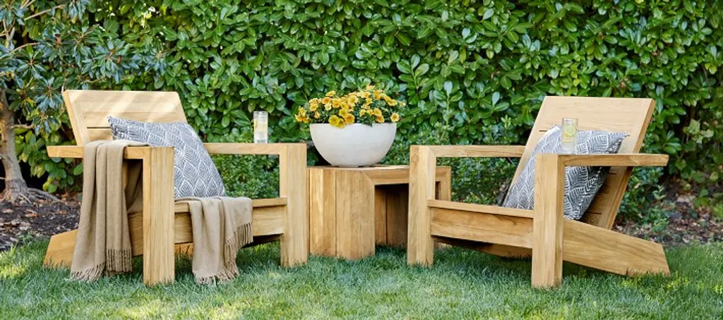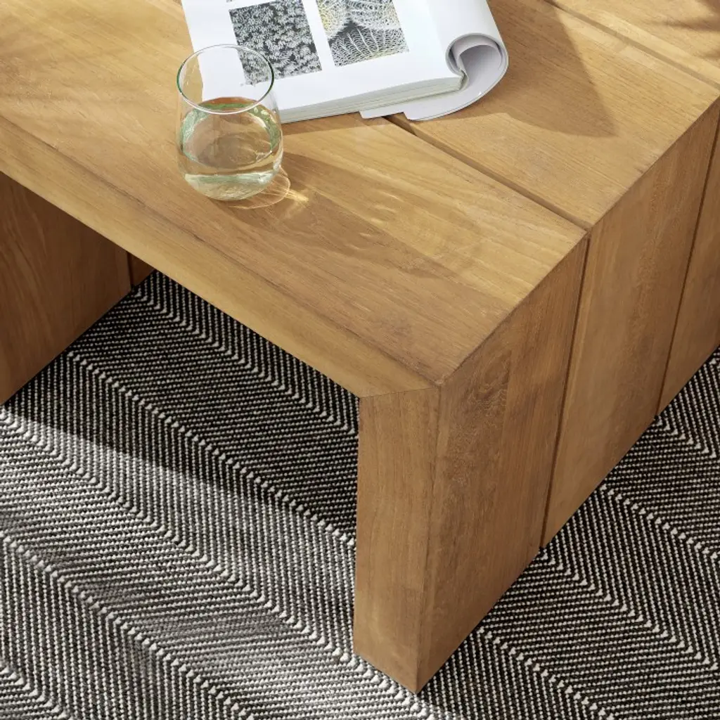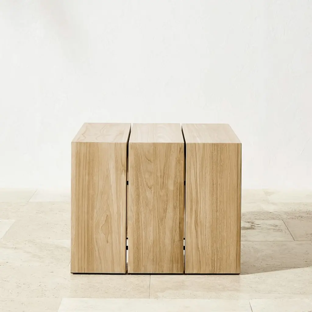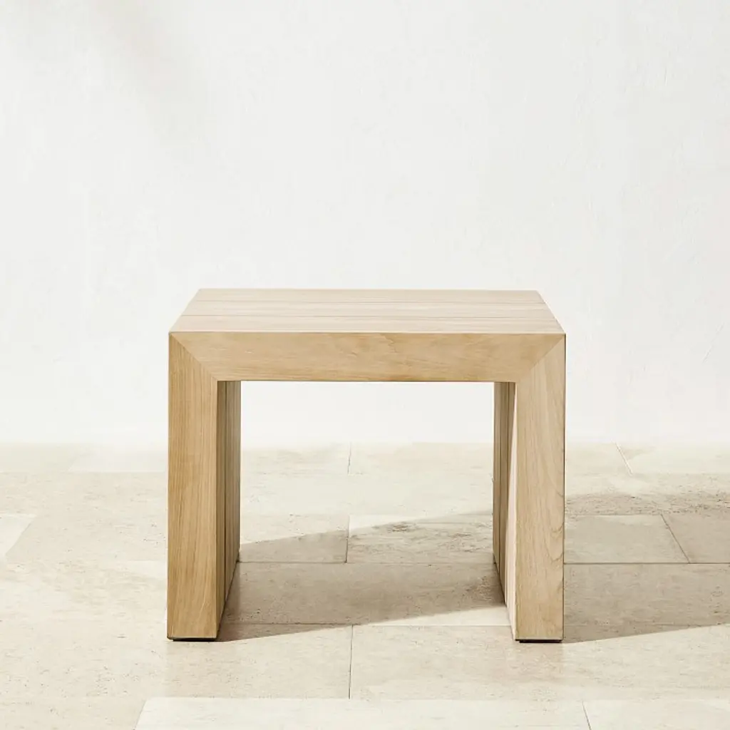 Sleek, modern silhouettes and the natural beauty of premium teak give this weather-friendly collection a timeless look all its own. Built to withstand the elements, our wide-planked teak side table is designed to let water easily drain through while offering ample surface space for drinks, books, magazines and more.