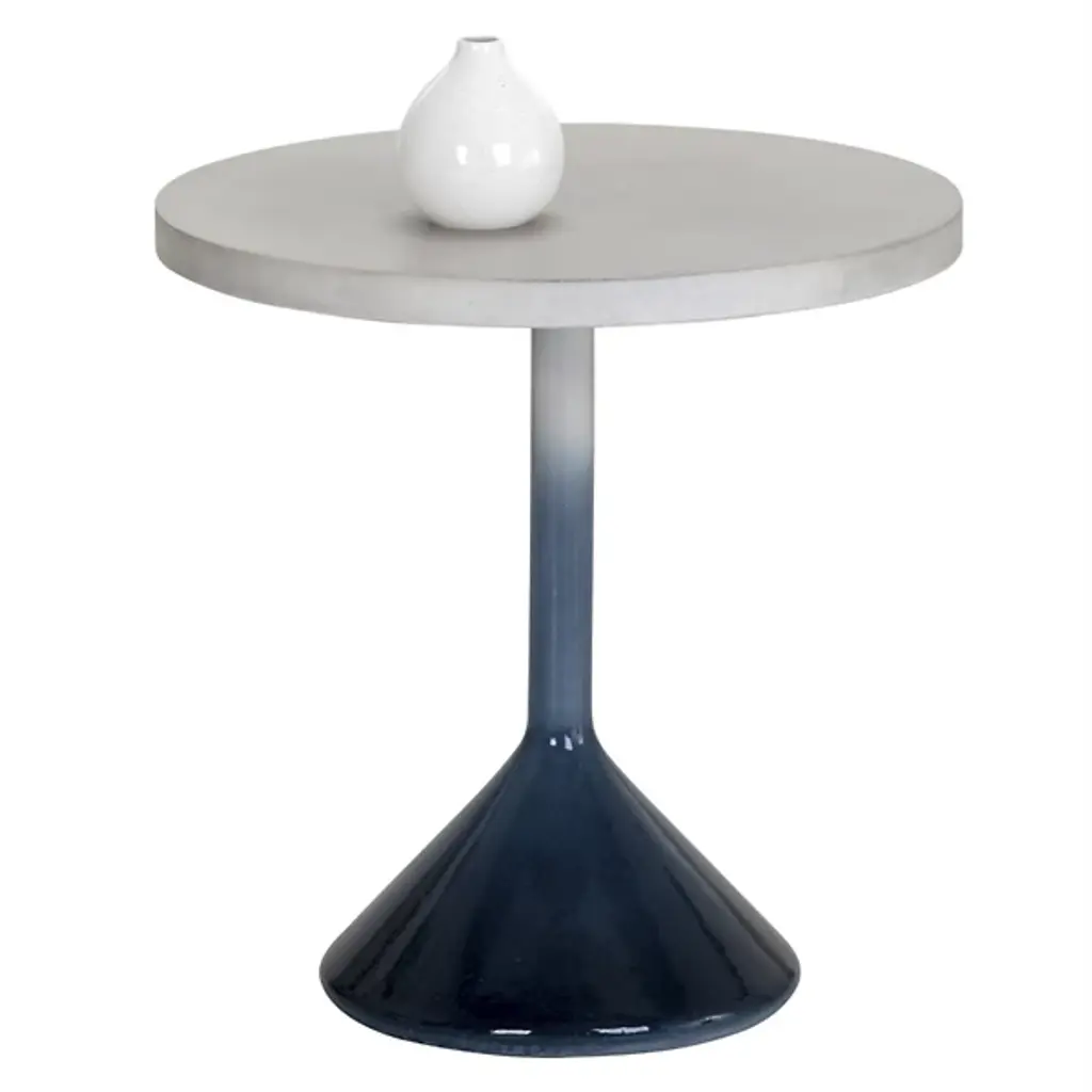 The Laszilo End Table from Sunpan brings a bold pop of color to your living or lounge space, designed to stand out with its high-gloss blue ombre finished base and round grey concrete top. Crafted from glass fiber-reinforced concrete, it offers durability and longevity, while a protective topcoat ensures resistance against moisture and staining. The thick tabletop is made from a natural concrete mix, giving each piece a unique look with subtle variations in color, texture, and charming imperfections like surface scratches and non-structural hairline cracks.