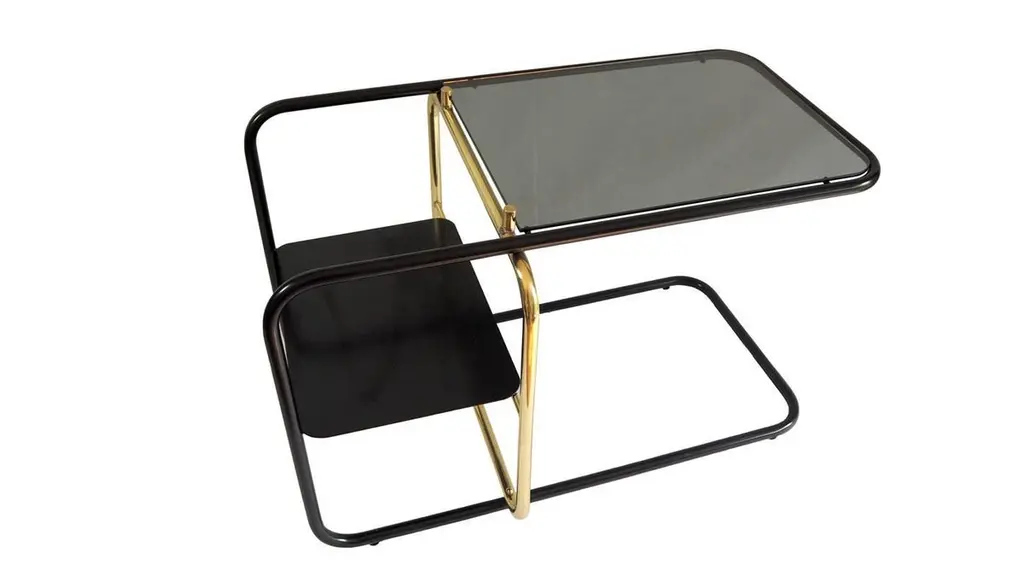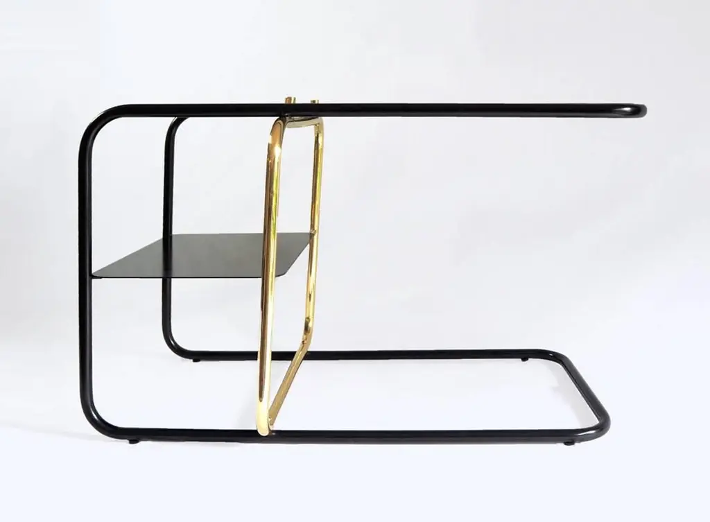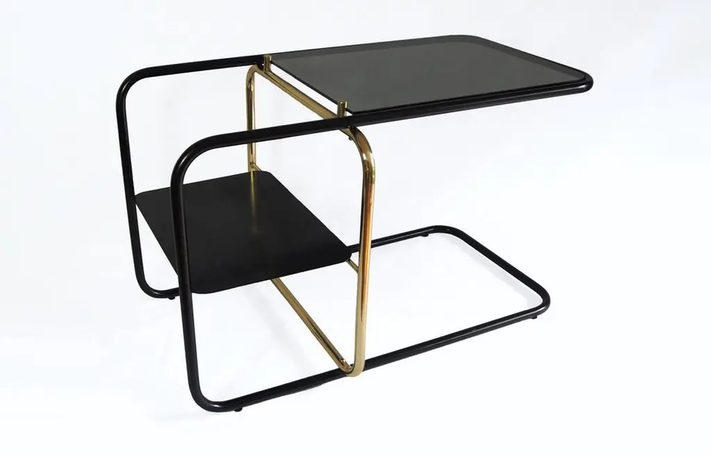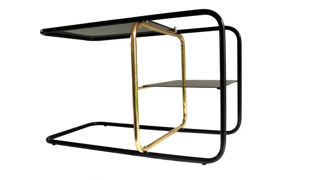 Inspired by the Bauhaus era masterful craft, Mexican Design firm Nomade Atelier has created the Lateral side table is an ode to geometric balance, tubular shapes and paramount functionality. Golden and black brass strike a timeless contrast against a smoked glass bi-level surface.