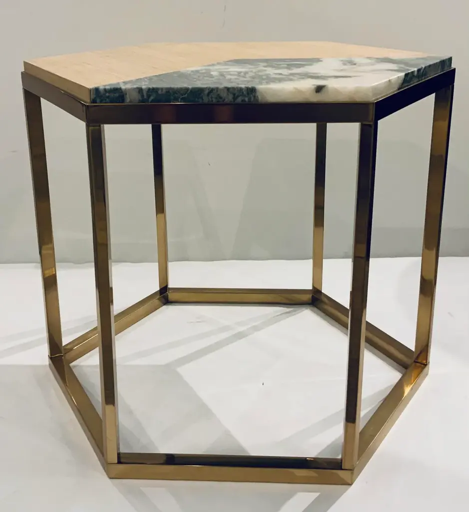Original Retail $6597, stylish Baker Modern Wood and Marble Nesting Table, gray and white marble contrasting beige wood, brass finished metal base, showroom floor sample, tables are sold individually, I have many. This marble is a natural stone and will vary on each table with different light or dark tones. I can get you more pictures of others if you like, just leave a comment. The ones pictured here may not be available.