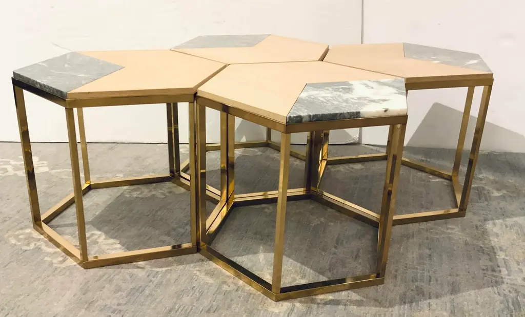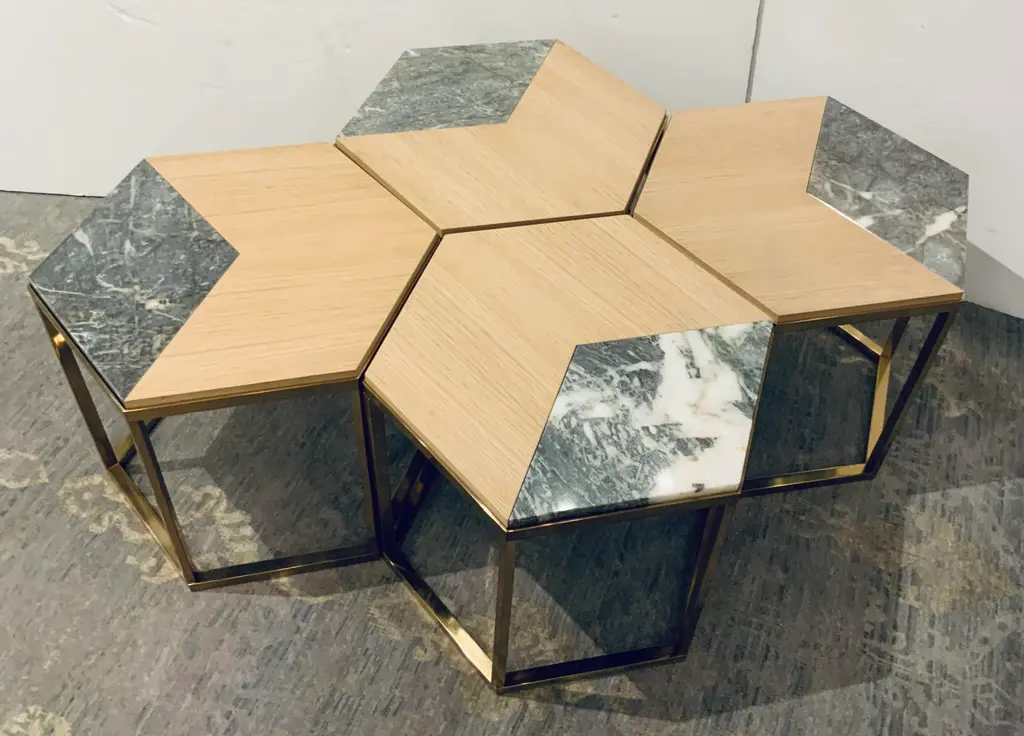 Laura Kirar For Baker Modern Wood And Marble Roma Nesting Table/side Table