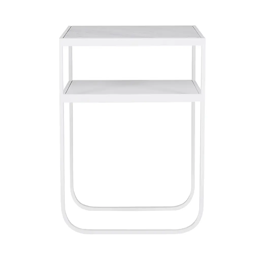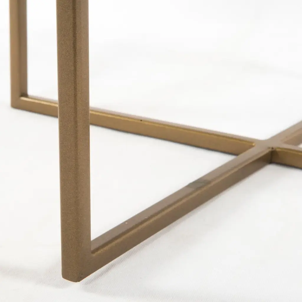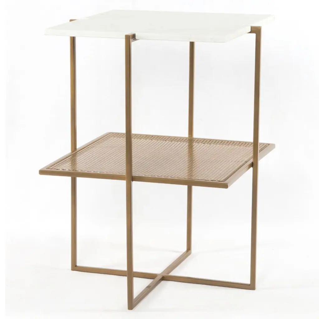 Lawrence Modern Classic White Marble Top Antique Brass Iron Square Side Table