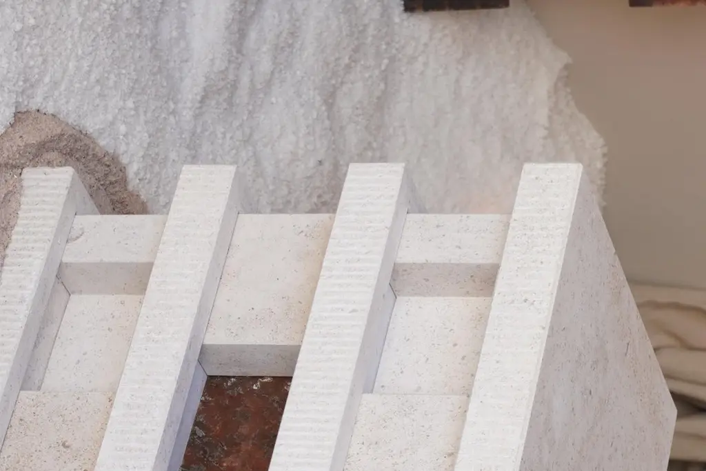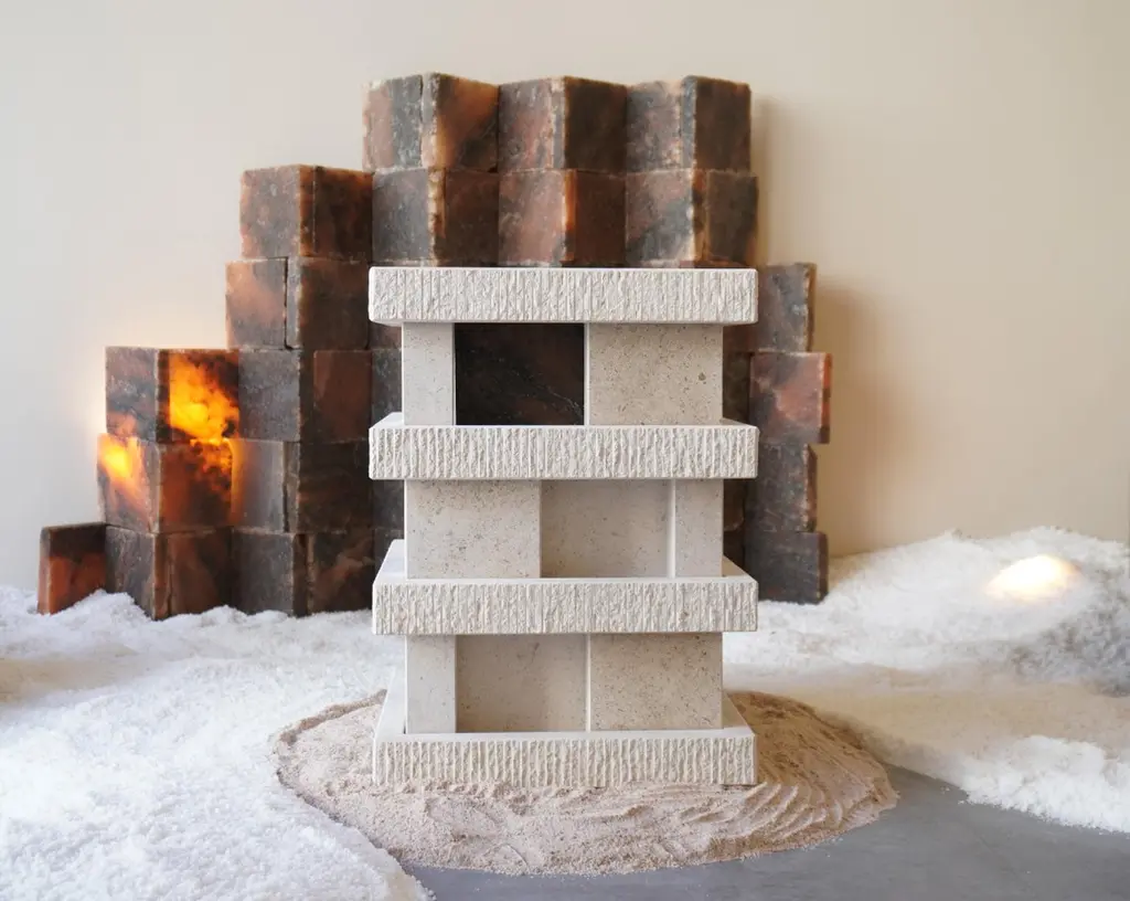 Layered Side Table by Studio GameiroDimensions: D 40 x W 40 x H 50 cm.Materials: Salt and Moleanos stone.Available in two different finishes: chiseled or honed. Please contact us.Studio Gameiro is an innovative, multidisciplinary, and design-focused agency that specializes in exploring relationships between traditional artisanship, sustainable design, and bespoke solutions for interiors, lighting design, furniture design, and architecture. We are passionate about promoting local artistry, designing with context, and finding solutions to complex briefs, and spatial and structural challenges.We experiment and establish concepts using tone, materiality, and warmth, and have a strong belief in rooting our designs in a contextual analysis of place. We believe that the future of architecture is about balancing contemporary, functional design with sustainably sourced materials and preserving, protecting, and celebrating local craft and culture. From our base in Lisbon, we have projects across Western Europe, and we search for clients and projects with the transformative potential to create new spaces and territories that fit within our ethos, celebrating local craft, bridging disciplines, and exploring contemporary notions of design.