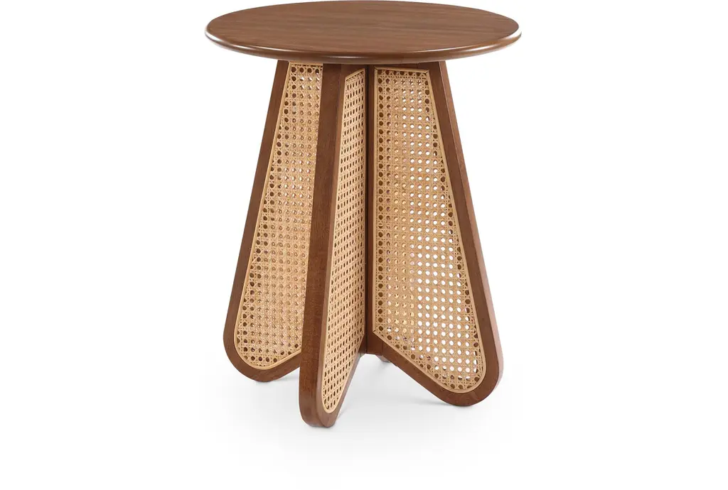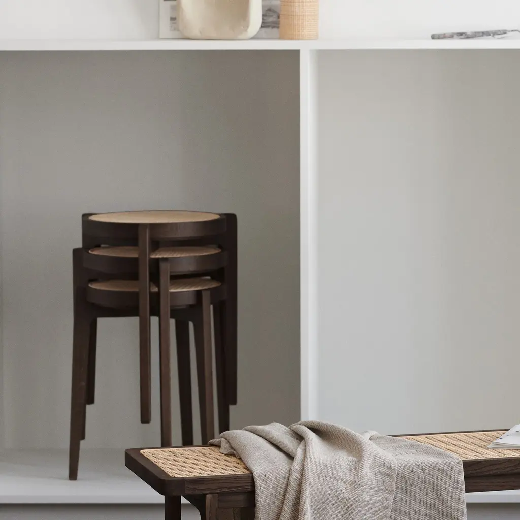 The Le Roi Side Table by Norr11 is constructed from solid ash with handwoven natural French rattan. Its compact size makes it versatile. The design features a frame geometry inspired by Scandinavian furniture and traditional French rattan craftsmanship. Created by designers Kristian Sofus Hansen and Tommy Hyldahl, the table is available in natural or dark smoked ash finishes.