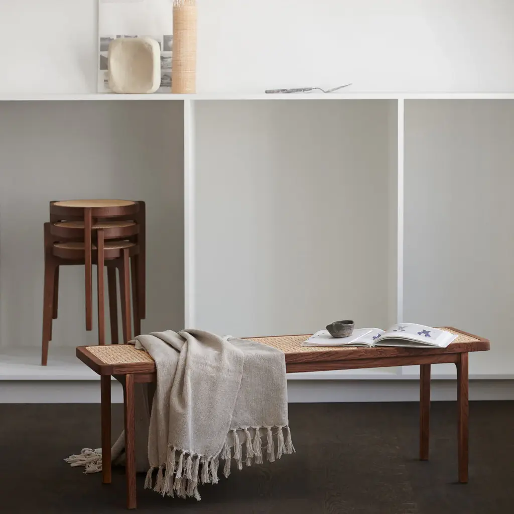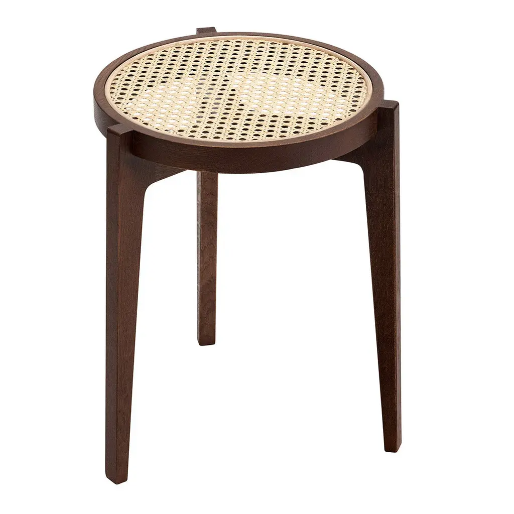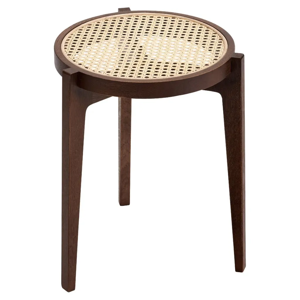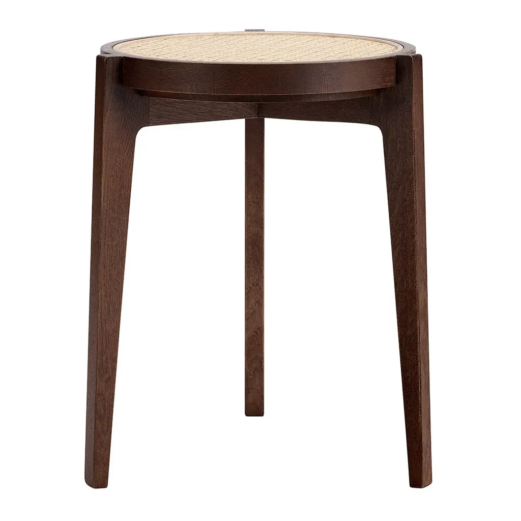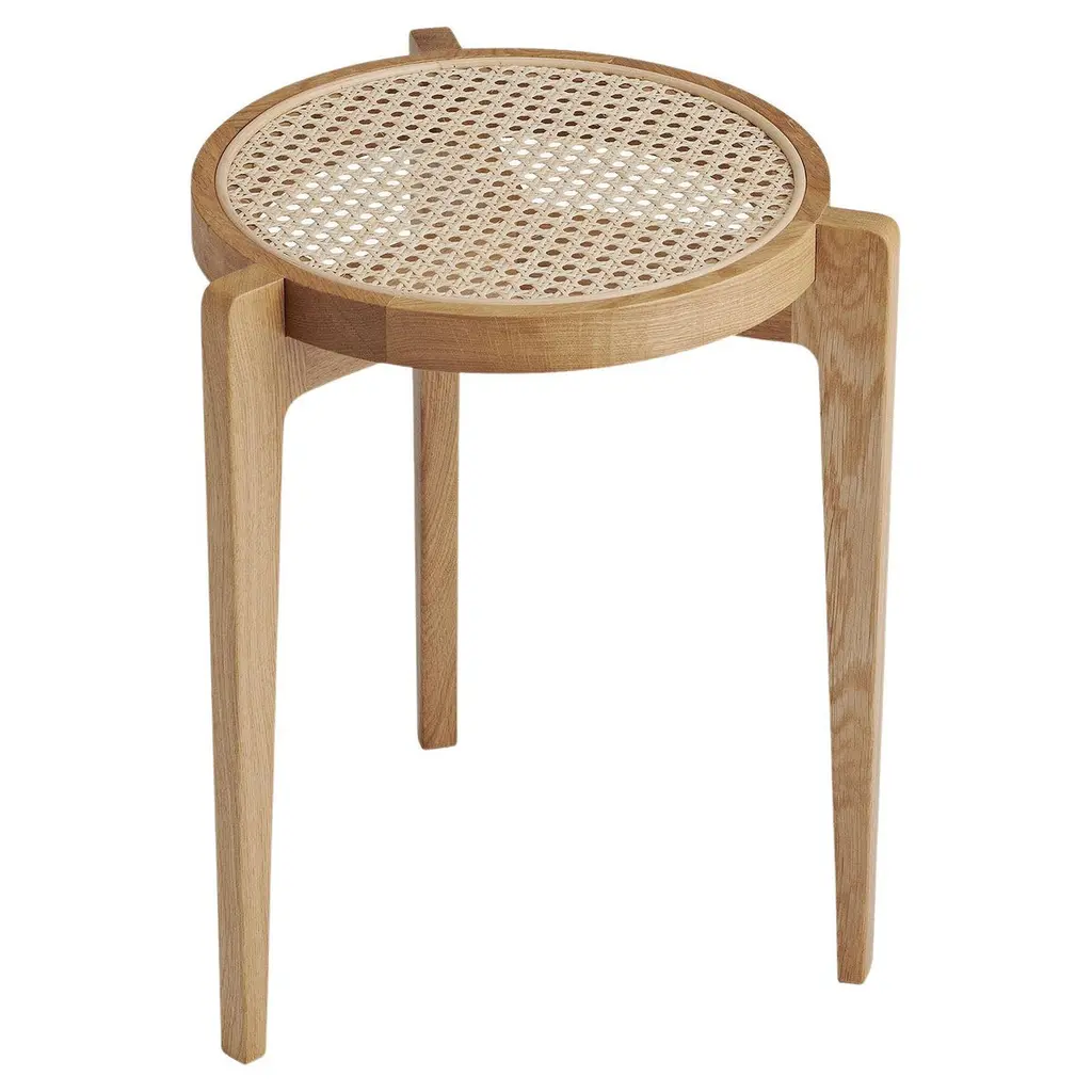 The Le Roi Side Table is a minimalistic interpretation of the classic Scandinavian three-legged stool. The side table is made from solid ash with inlaid rattan mesh and can be stacked to save space in a spiralling sculpture.