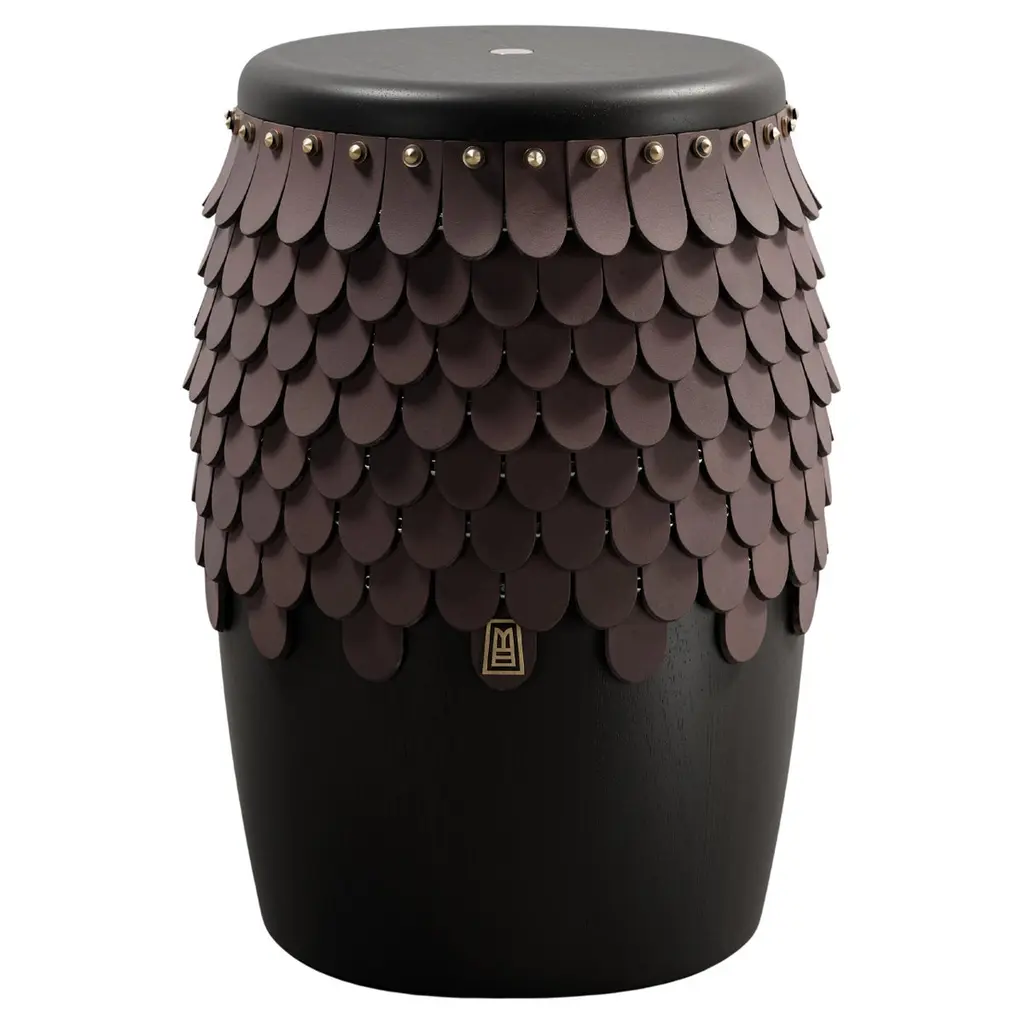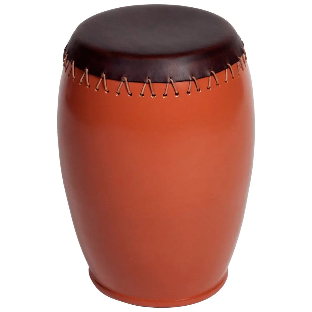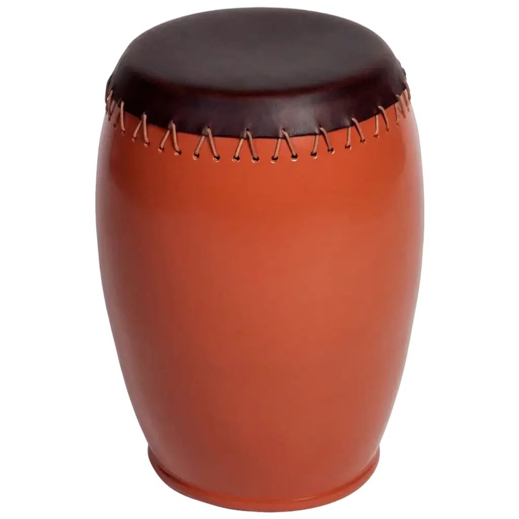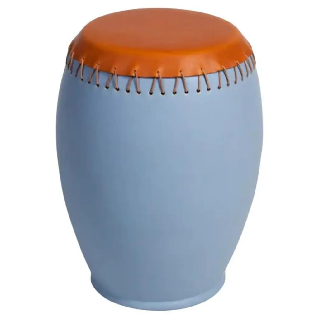 Leather side table by Nestor Perkal It can also be used as a stool Available in three different dimensions: Dimensions: 45 x 58 x 58 (available in different dimensions) Nestor Perkal created Bombo in that same spirit. Its name resounds like the beating of a drum; but the reference to Argentinian drums is far more than tongue-in-cheek. The fabrication process is complex. Like upturned jars, these hollow ceramic orbs are hand made, either turned or slip-cast, depending on their size. What follows is delicate: holes are punched in the yet unfred clay. Once the pieces are fred and glazed, the leather straps that ensure that the skin seat remain taut will be laced through them. This piece is attributed to the mentioned designer/maker. It has no attribution mark and no official proof of authenticity, however it is well documented in design history. I take full responsibility for any authenticity issues arising from misattribution