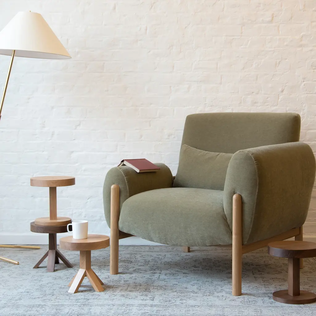 Call them fraternal, not identical twins — this pair of small side tables with hand-drawn circular tops part company at the bottom. The with 4 legs, these diminutive designs sit very low and are ideal for placing next to a sofa or lounge chair. Designed to capture the spirit and magic of Japanese joinery with a hand-made sensibility, SCP's duo were conceived in concert with Ishinomaki Laboratory and are made in the EU of FSC-certified European oiled walnut or oak.