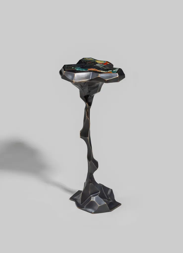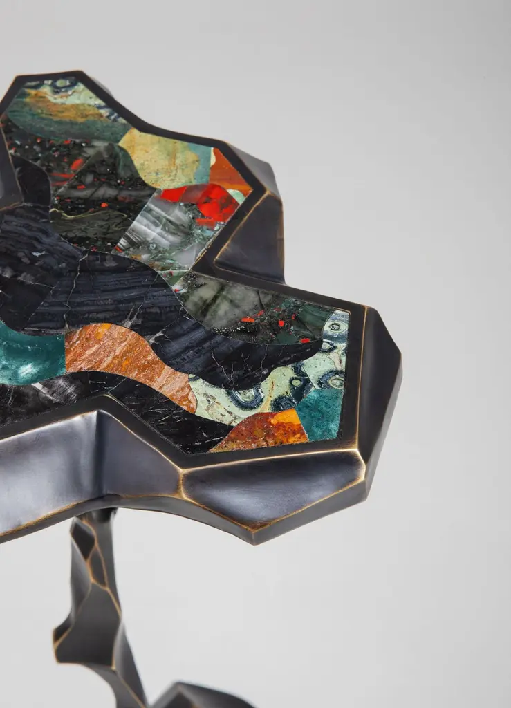 Leh Side Table Tall In Brass With Semi Precious Stones, Viya By Vikram Goyal