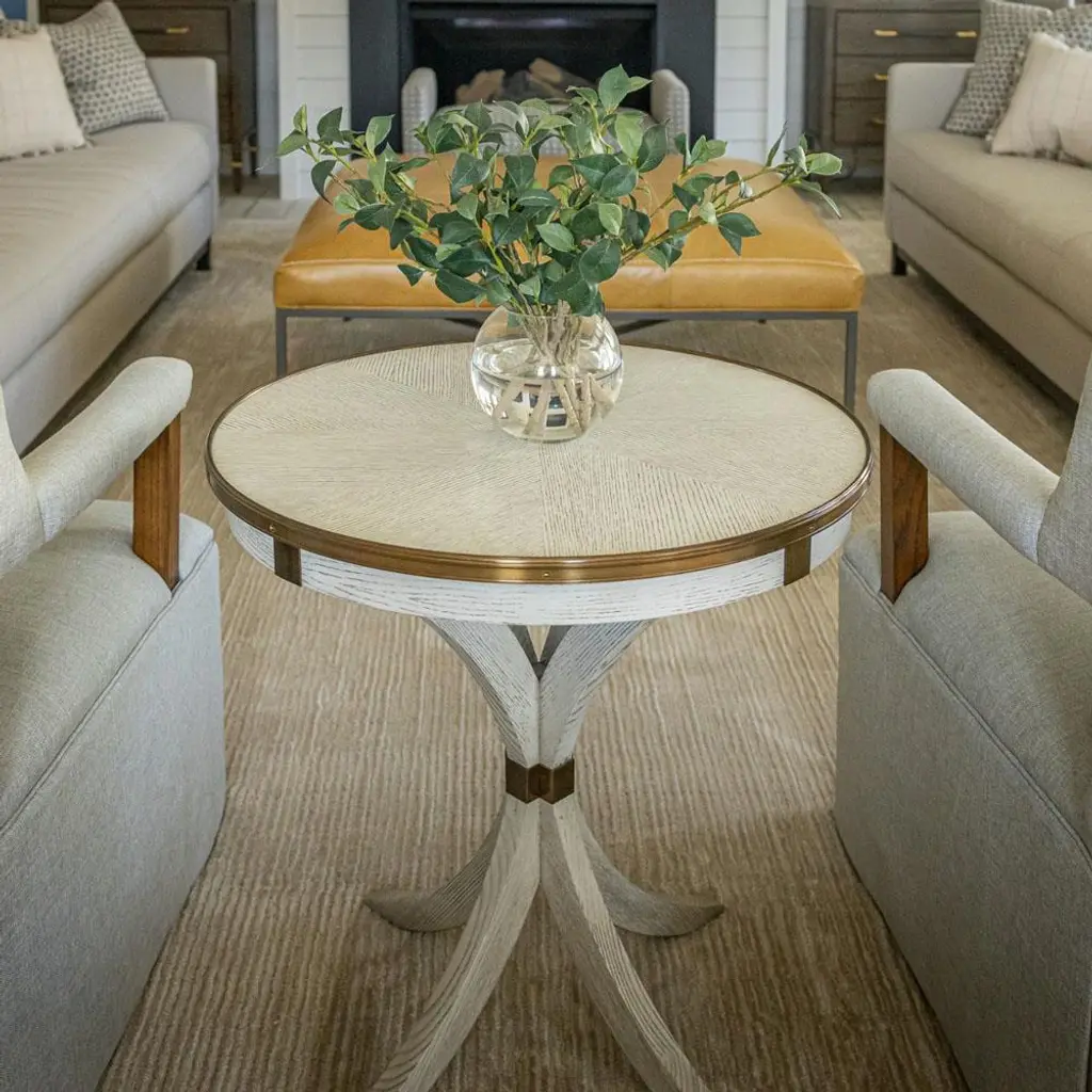 Leilani Hollywood Regency Luna White Wood Round Side Table