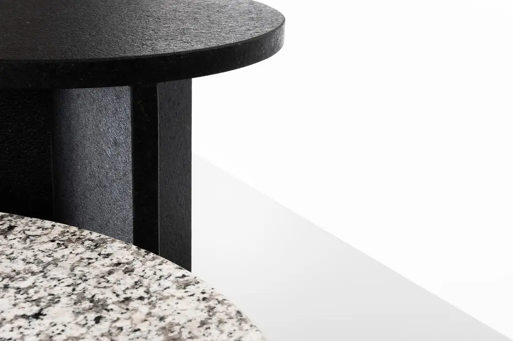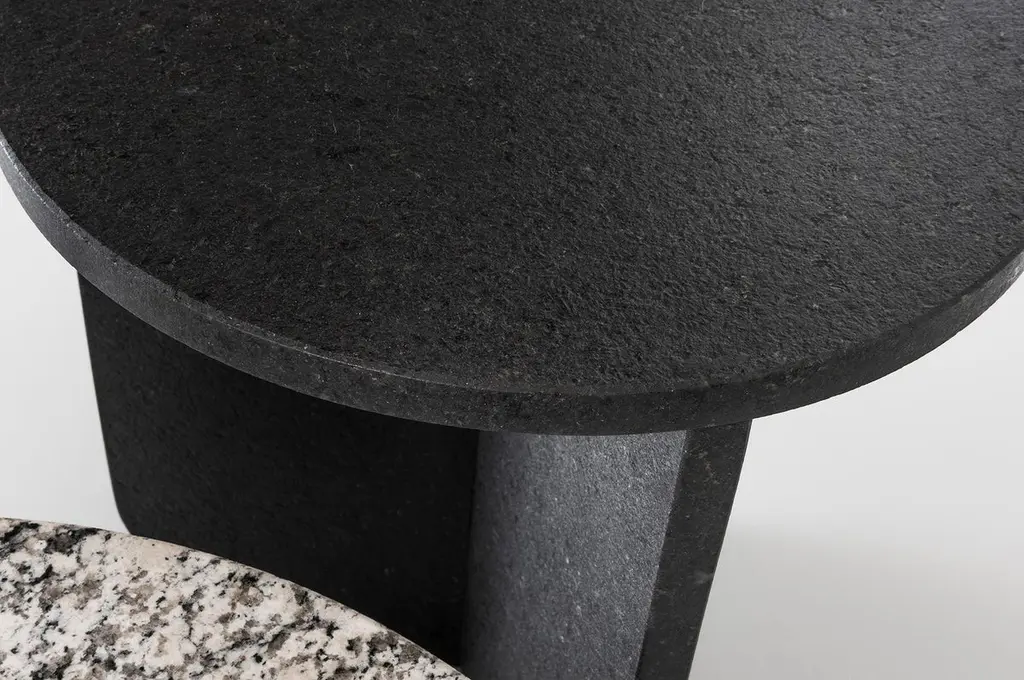 Leme tables have their lines inspired by the rudders of the boats. The rudders are designed to operate underwater, where everything is lighter and, all movement, more fluid. Based on this observation, the tables were designed with soft lines that give the pieces a light appearance, contrasting the heavy material. The base of the tables is composed of 3 vertical plates and its stability is given by the weight of the stone. The collection is composed of two low tables made entirely in Brazilian Granites with matte and textured finishes.Colours: Black Granite or Dotted Granite.