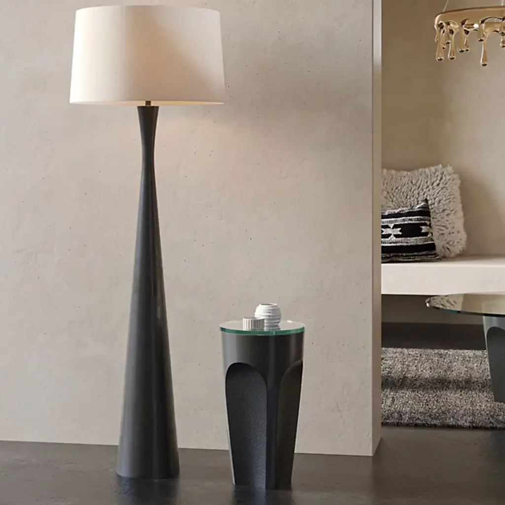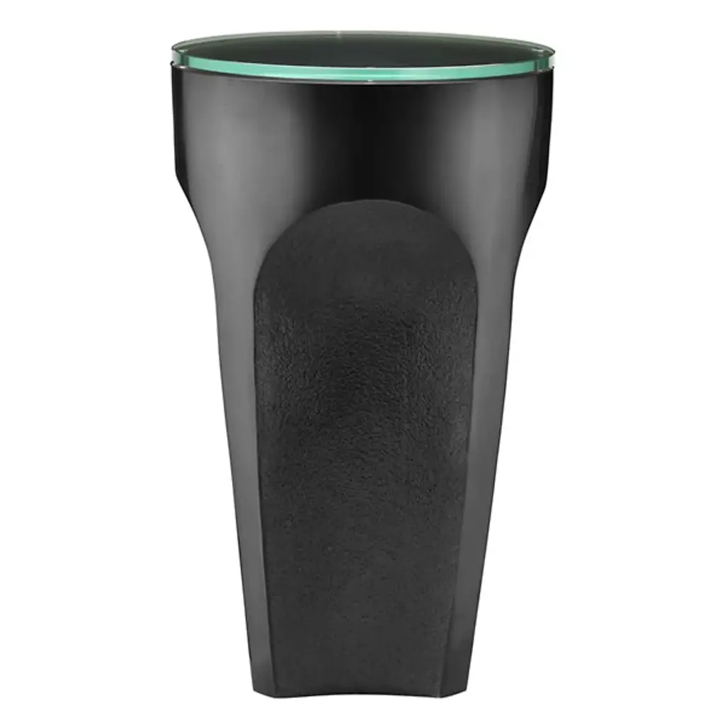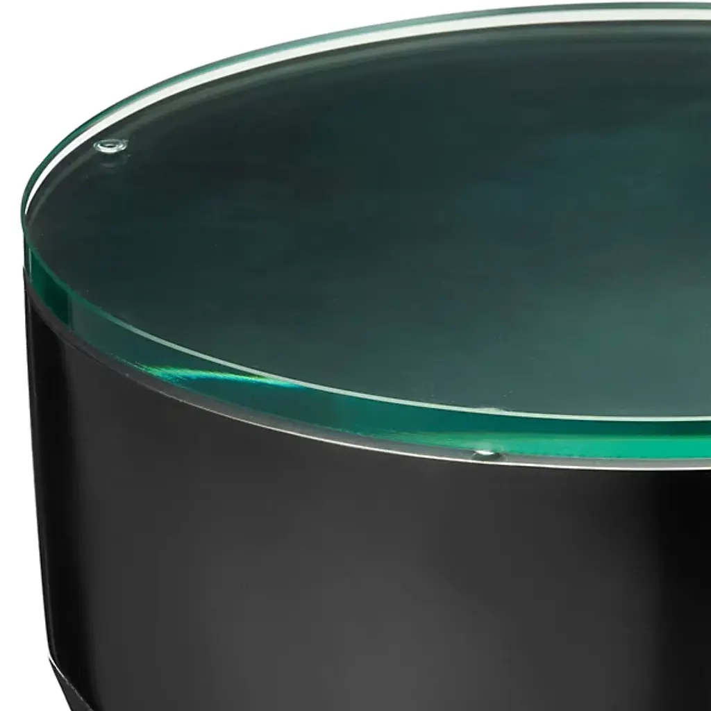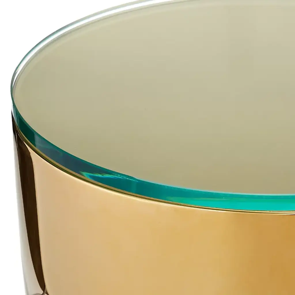 The Lemy Drinks Table from Currey & Company is a bold mix of shape and texture, blending refined polish with artisanal craftsmanship. Molded from stainless steel, its sculptural base features carved-like inner indentations that add depth and dimension to its character. A round tempered glass top provides a smooth contrast, offering a functional surface with a light, airy feel that contrasts with the metal. Perfect for modern interiors, this compact accent table makes a sophisticated statement, whether placed beside a lounge chair or as a stylish standalone piece.