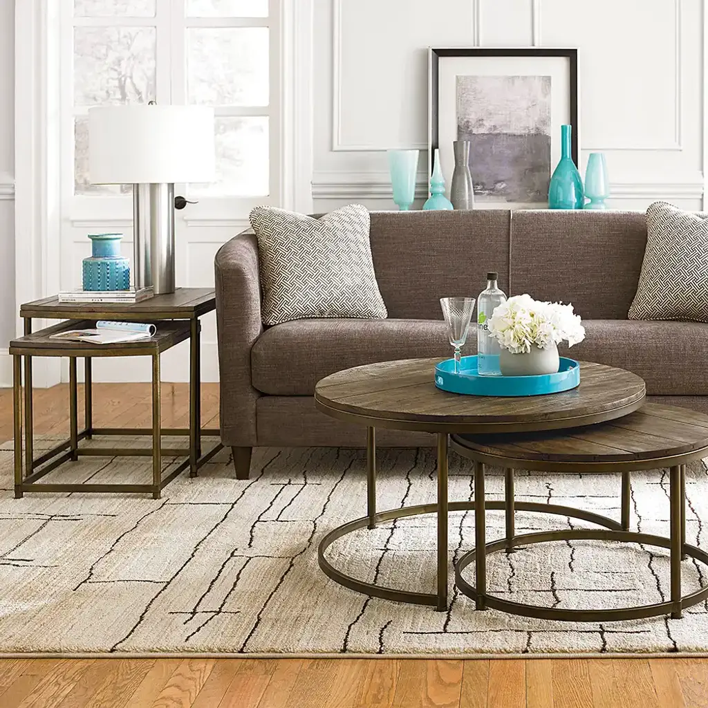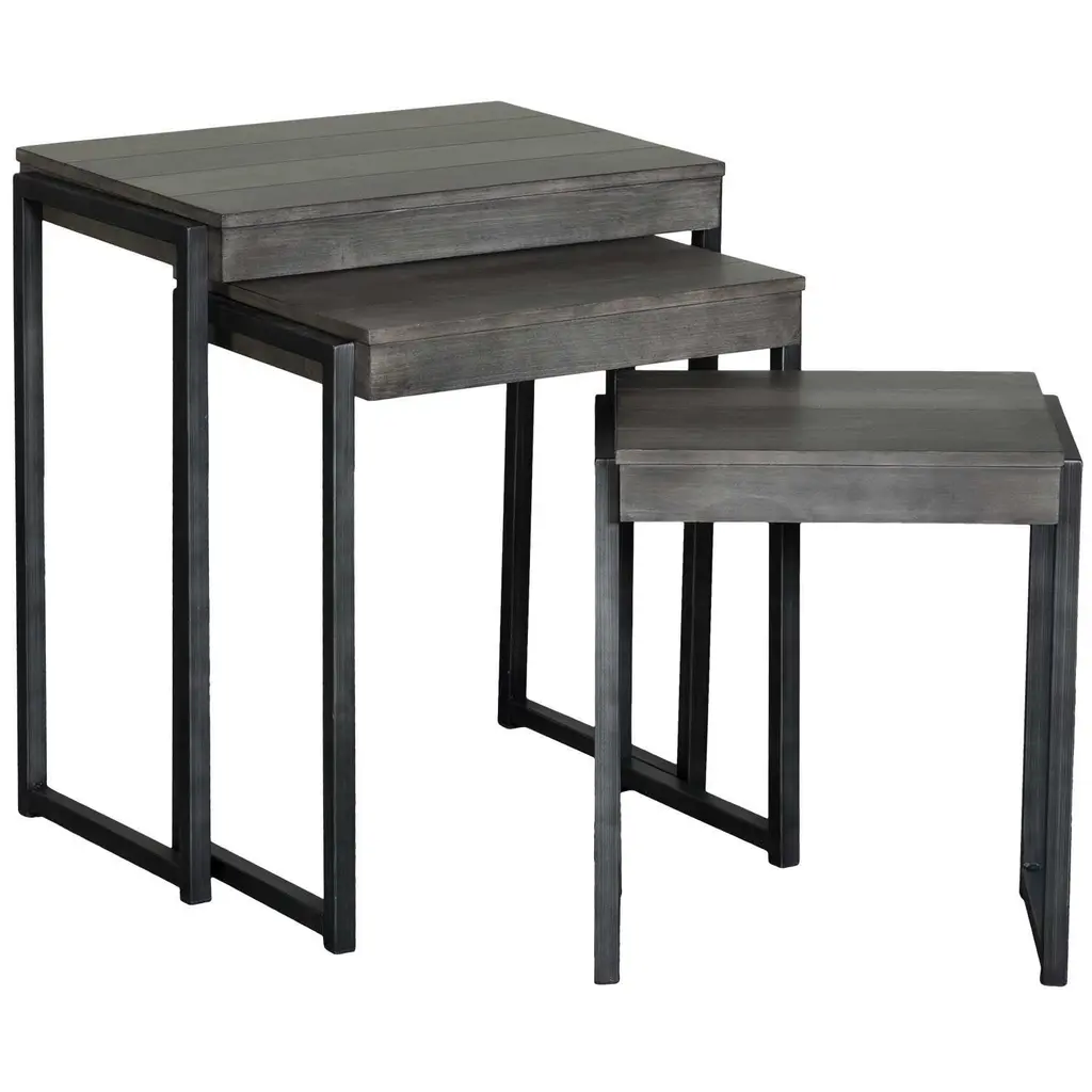 The Leone Nesting End Table offers a blend of rustic charm and contemporary flair with its solid plank tops and antique brass finished base. Perfect for adding functionality and style to any living space, these nesting tables seamlessly complement a variety of decor styles. Crafted with quality materials, they provide durability and versatility, making them a versatile addition to your home.