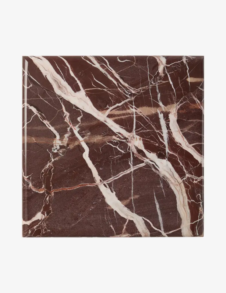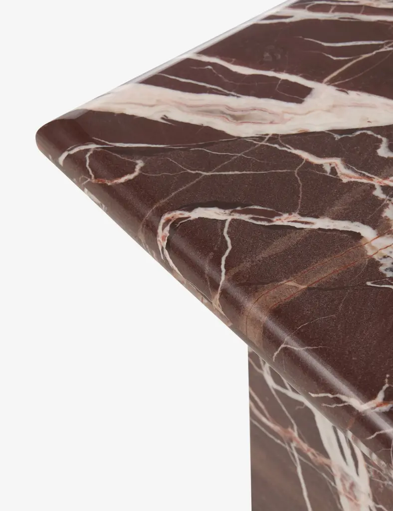 Clean edges and luxe materiality evoke notes of retro Italian design in this solid marble side table. Dramatic veining stands out against polished edges, striking a crisply timeless look. Add this end table to any space for a sleek accent that elevates the whole.