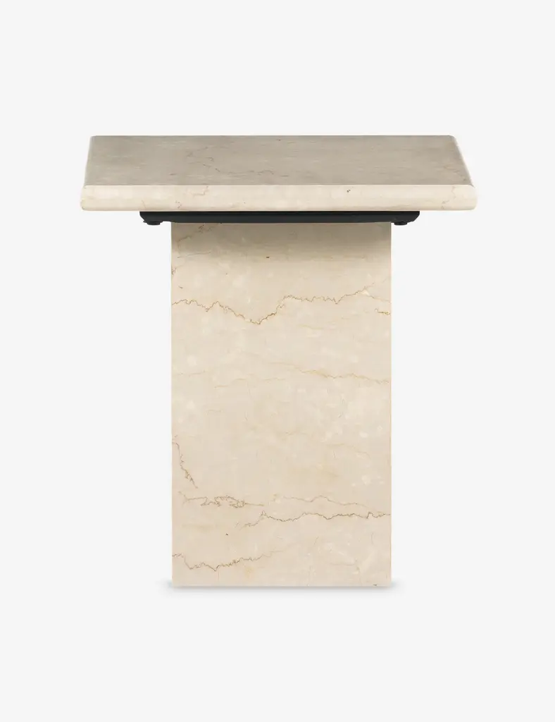 Clean edges and luxe materiality evoke notes of retro Italian design in this solid marble side table. Dramatic veining stands out against polished edges, striking a crisply timeless look. Add this end table to any space for a sleek accent that elevates the whole.