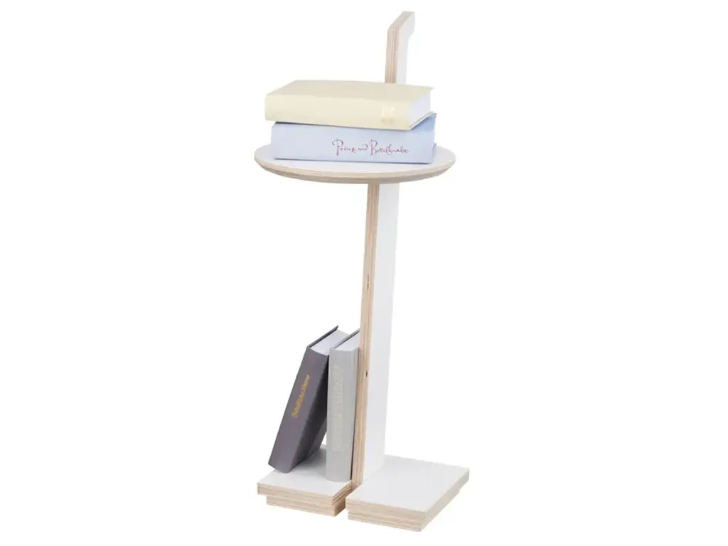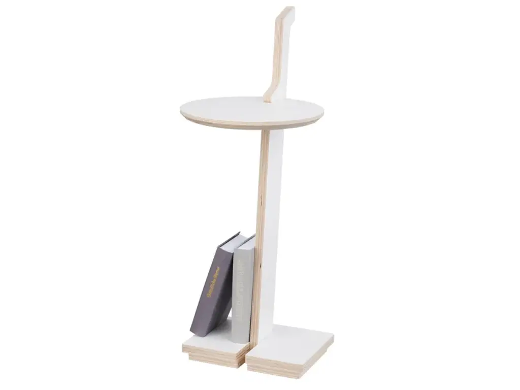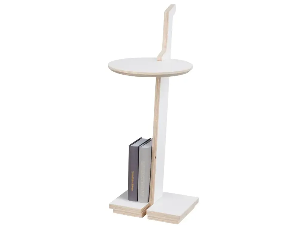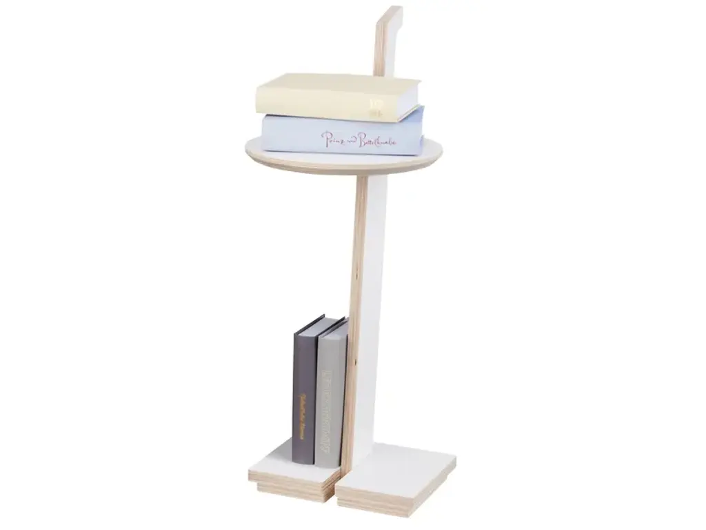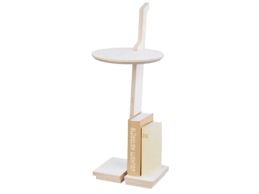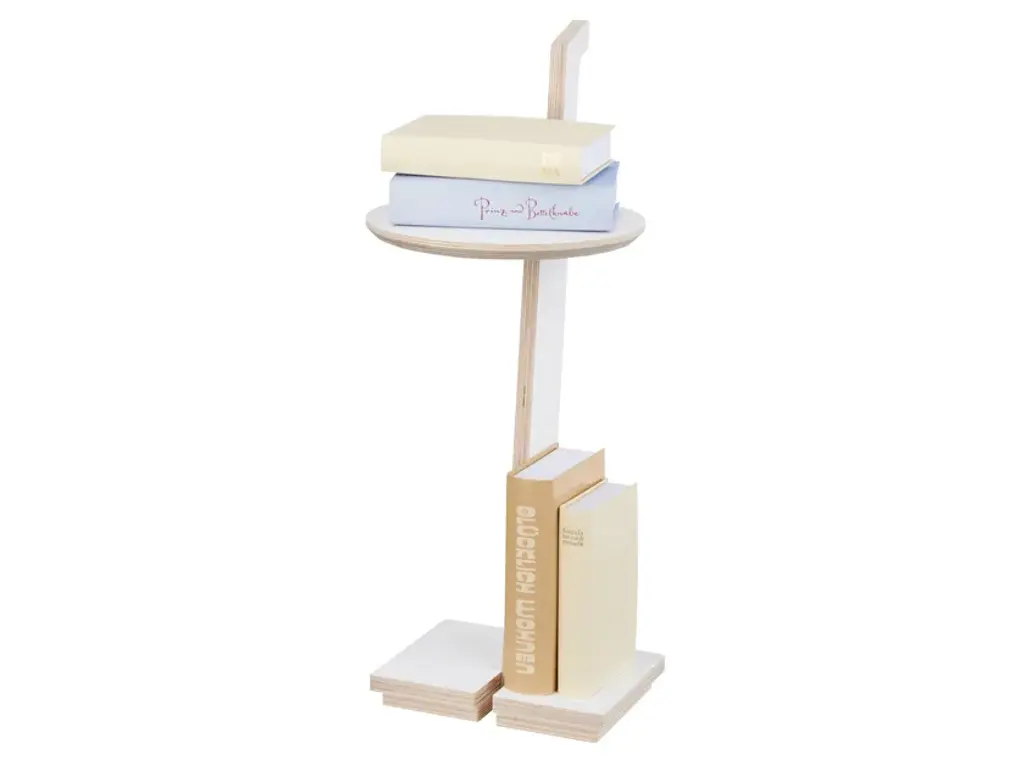 Tojo-lesestelle - a side table with book stock. It stands where it is needed. The round tray offers space for glasses, reading glasses or the remote control. Below, the mobile reading station offers enough space for the current favorite books. With the handle, the practical side table can be easily taken where it is needed: in the garden or in the bedroom as a bedside table. If the bottom plates are screwed together, all parts are only put together.