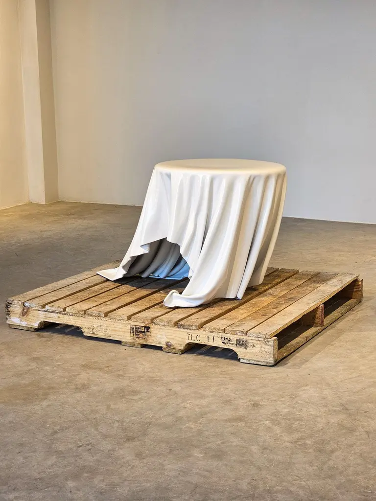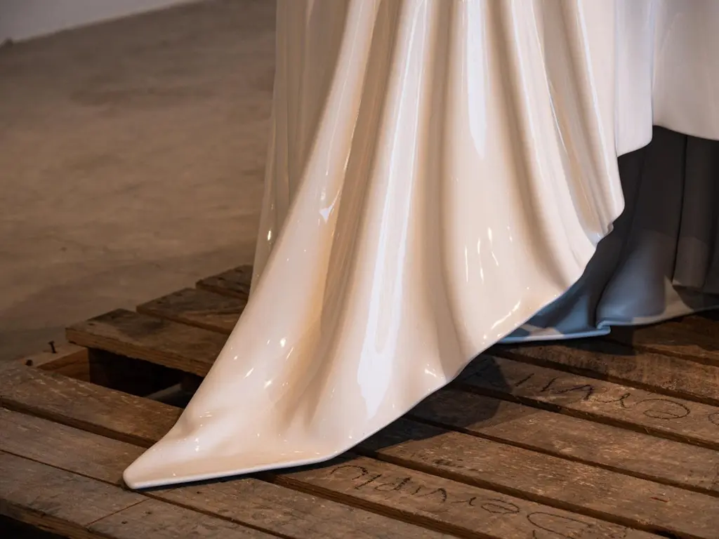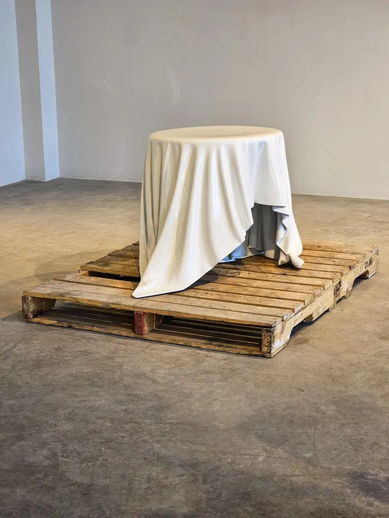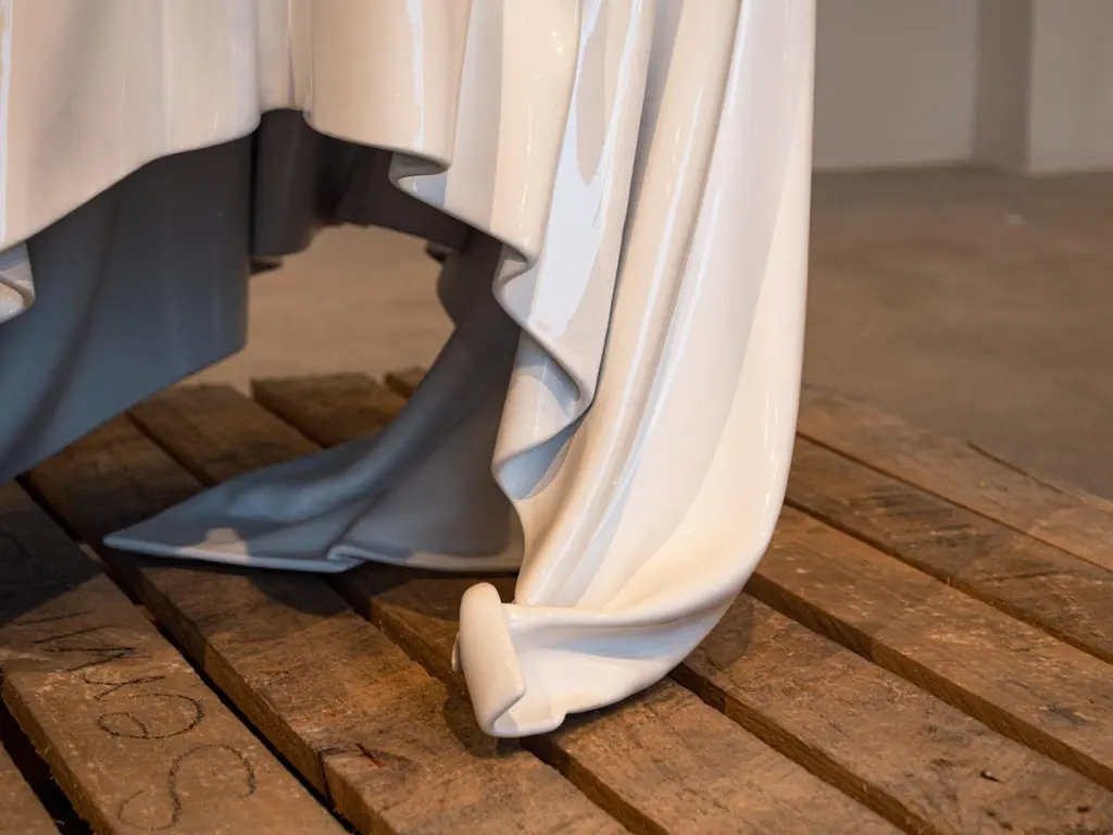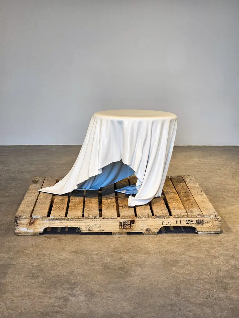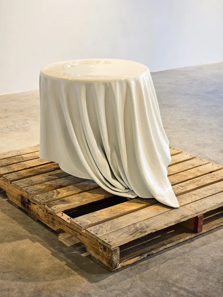 The Levitaz Side Table, finished in a White Gloss automotive finish, exemplifies modern sophistication with its elegant design and meticulous craftsmanship. This piece, sculpted from high-strength resin reinforced with carbon fiber, achieves a fluidity that echoes soft fabric draping effortlessly over the table's circular form. Its design concept leverages the classical drapery techniques seen in Renaissance sculptures, reimagined through a contemporary lens to create a table that appears enrobed in a flowing, seamless cloth. This illusion is achieved through advanced molding techniques in high-strength resin, allowing the fine details of textile-like folds to be captured in solid form. The table's design not only challenges the traditional aesthetic of rigid furniture but also evokes a sense of movement and softness, making it a profound statement piece that harmonizes with the clean, modern lines of contemporary living spaces.This conceptual design transcends traditional form, presenting a functional piece of furniture as an evocative work of art. The seamless curves and the gleaming, reflective finish enhance the visual perception of depth and movement, making this table not merely an object within a space but a pivotal design element that shapes the aesthetic and atmosphere of its environment. The Levitaz Side Table is a profound statement in the exploration of form, combining classical influences with cutting-edge fabrication techniques to achieve a striking balance of old-world elegance and contemporary design.