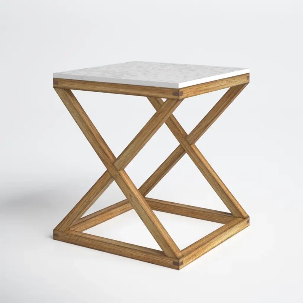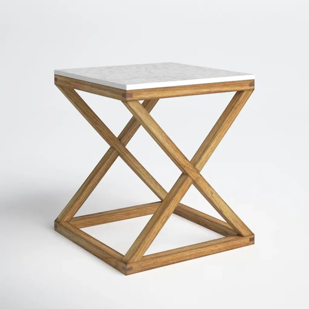 This modern end table has a sturdy, X-frame base and a mixed-material element that's modern and trend-focused. It sits on a solid wood base with two support beams that create an airy, open square base. Up top, the table is made from white marble for a sophisticated, cool-casual vibe we love. This end table is the perfect companion to your sofa or favorite chair, but we also love the way it looks as an unexpected nightstand in your bedroom.