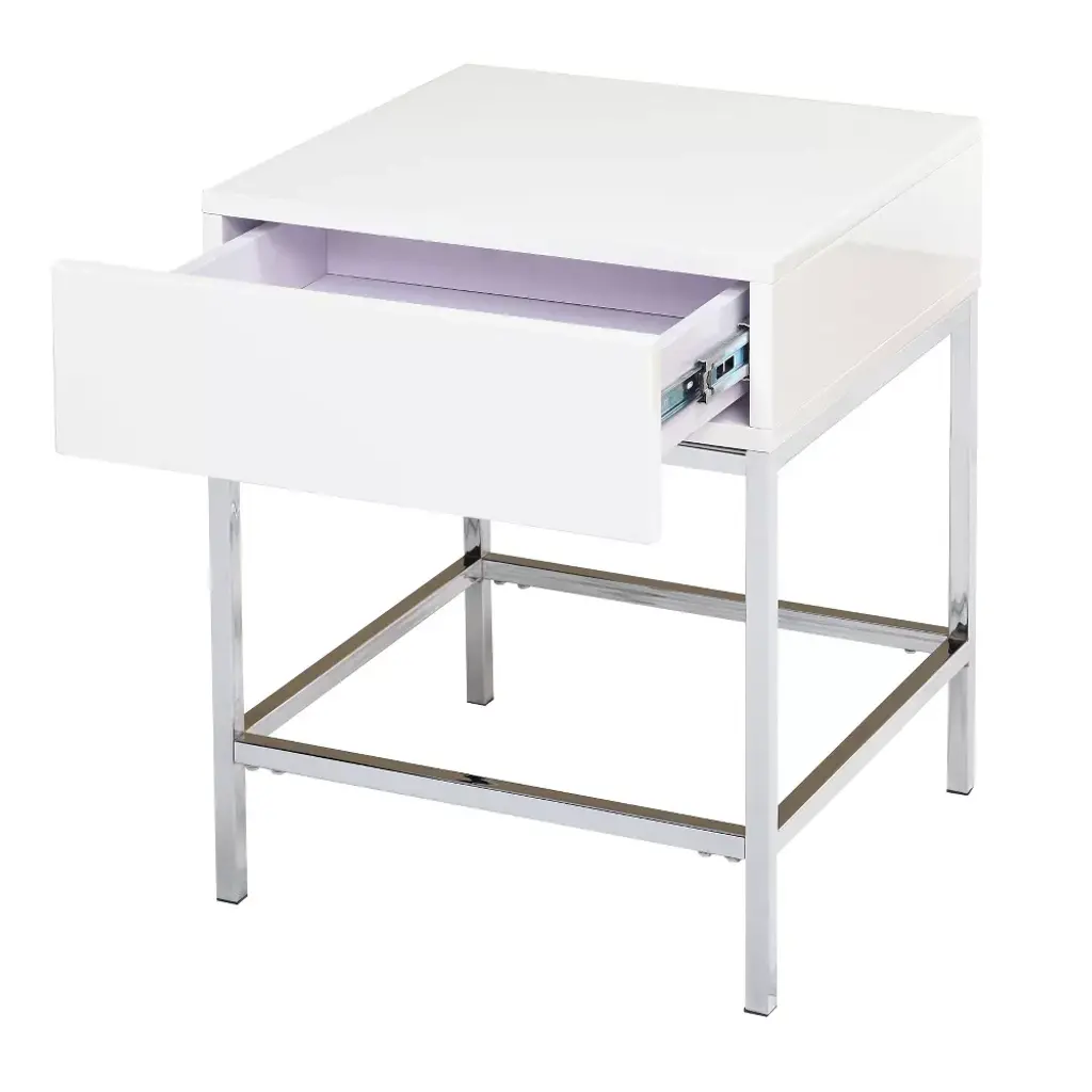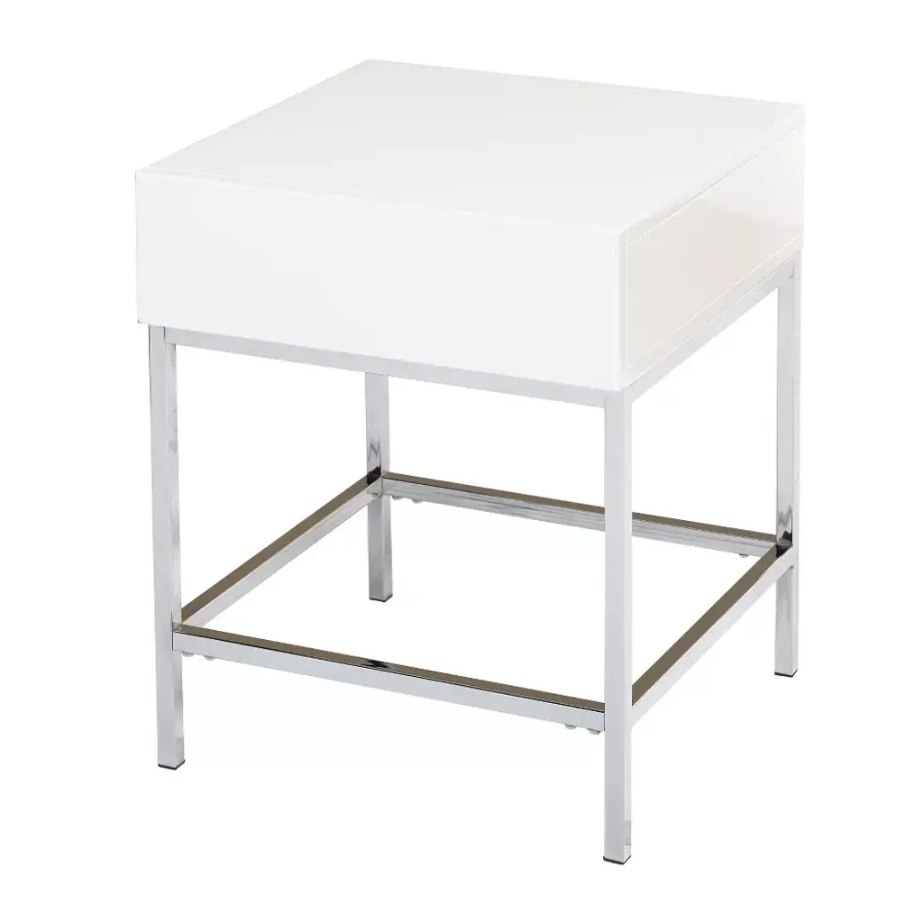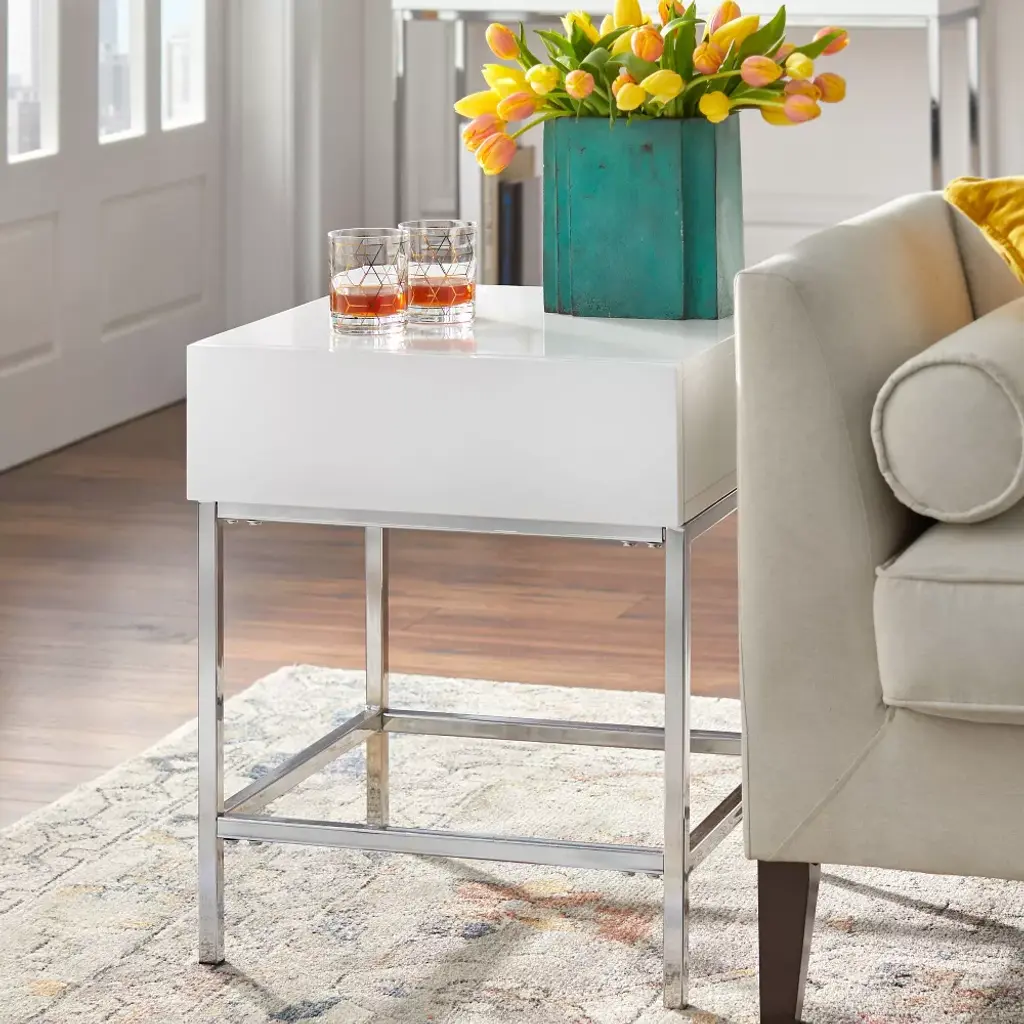 Lewis Modern End Table White - Buylateral: High-gloss Mdf, Sturdy Metal Frame, 23.8" Height