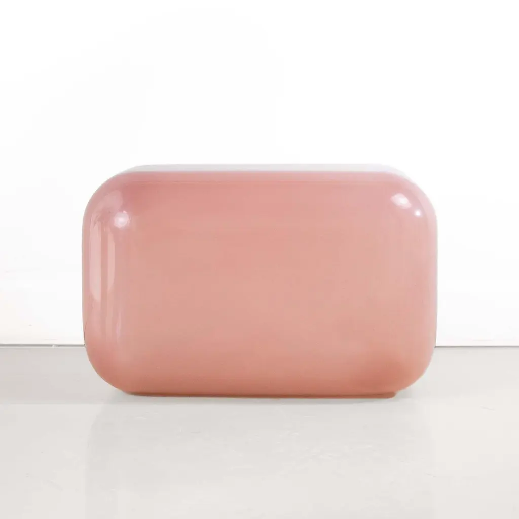 Lichen Oort Resin side table by creators of objects.Materials: Resin, pigmentDImensions: W 56 x D 36 x H 36 cmAlso Available: Tourmaline, Bordeaux, Spice, Ochre, Forest, Ocean, Twilight, Rock, Lilac, Cerise, Coral Spice, Honey, Moss, Surf, Eve, Stone, Thistle, Bubblegum, Coral, Creme, Lichen, Lagoon, Mist and Pebble. Please contact us.These smooth, rounded forms were inspired by the OORT CLOUD — a theoretical cloud of icy planetesimals that encircle our solarsystem. We imagined these objects being gently eroded over the eons, as they travel amongst the cloud.OORT are created in our Toronto studio using the process of rotocasting. Resin is added layer by layer from the inside, and turned byhand, to build up structure and colour depth. The process takes many days, and while the exterior forms are measured and polished,the interiors tell the story of its creation. Small random bubbles and slight variances in wall thickness make each piece beautiful andunique.At Creators of Objects we investigate the connection between art and design. Explorations of texture, transparency, saturation and luminescence.The relationship between weight, structure and material quality invites you to touch and explore.Creators of Objects is the Toronto based collaborative studio project of Jonathan deSwaaf and Joanne Byrne.Known for our cast resin work and commissioned installations, our made to order collection includes furniture, accessories, objects and art.Influenced by colour, light, transluscency and material exploration, we create familiar new forms while also taking impressions of everyday items, using new materials and juxtapositions that shift the perception of those objects.Pieces are made one by one with a “future analog” approach that embraces experimentation, technology, precision, modern materials and processes blended with traditional practices that leave hand made traces and imperfections.