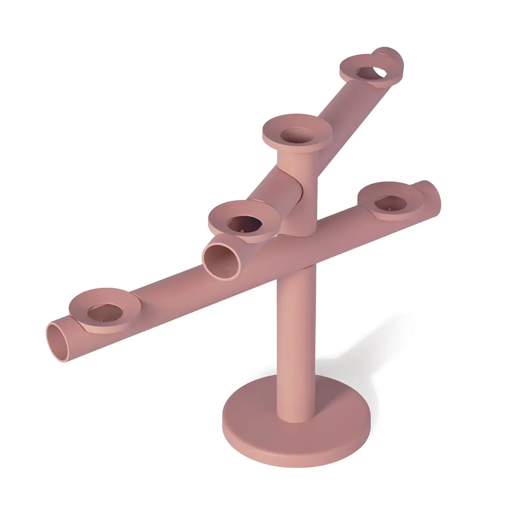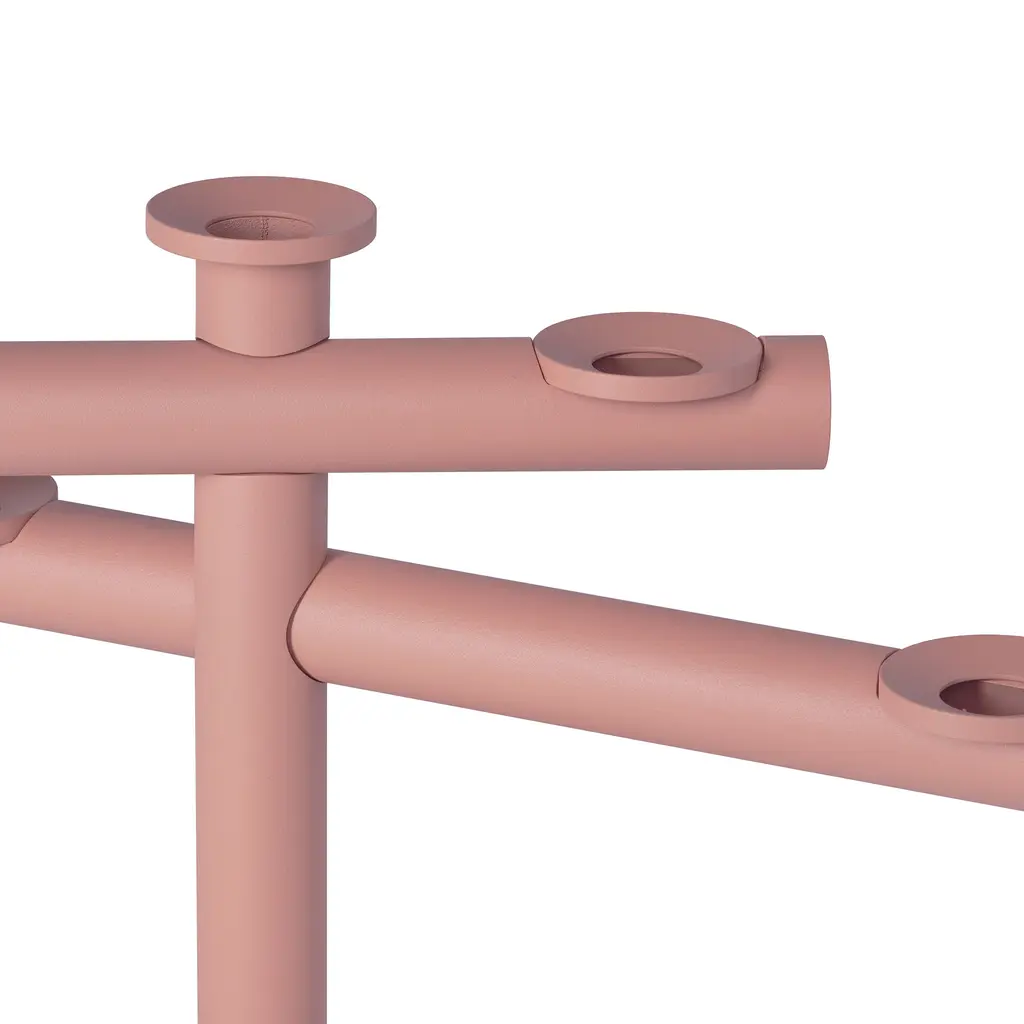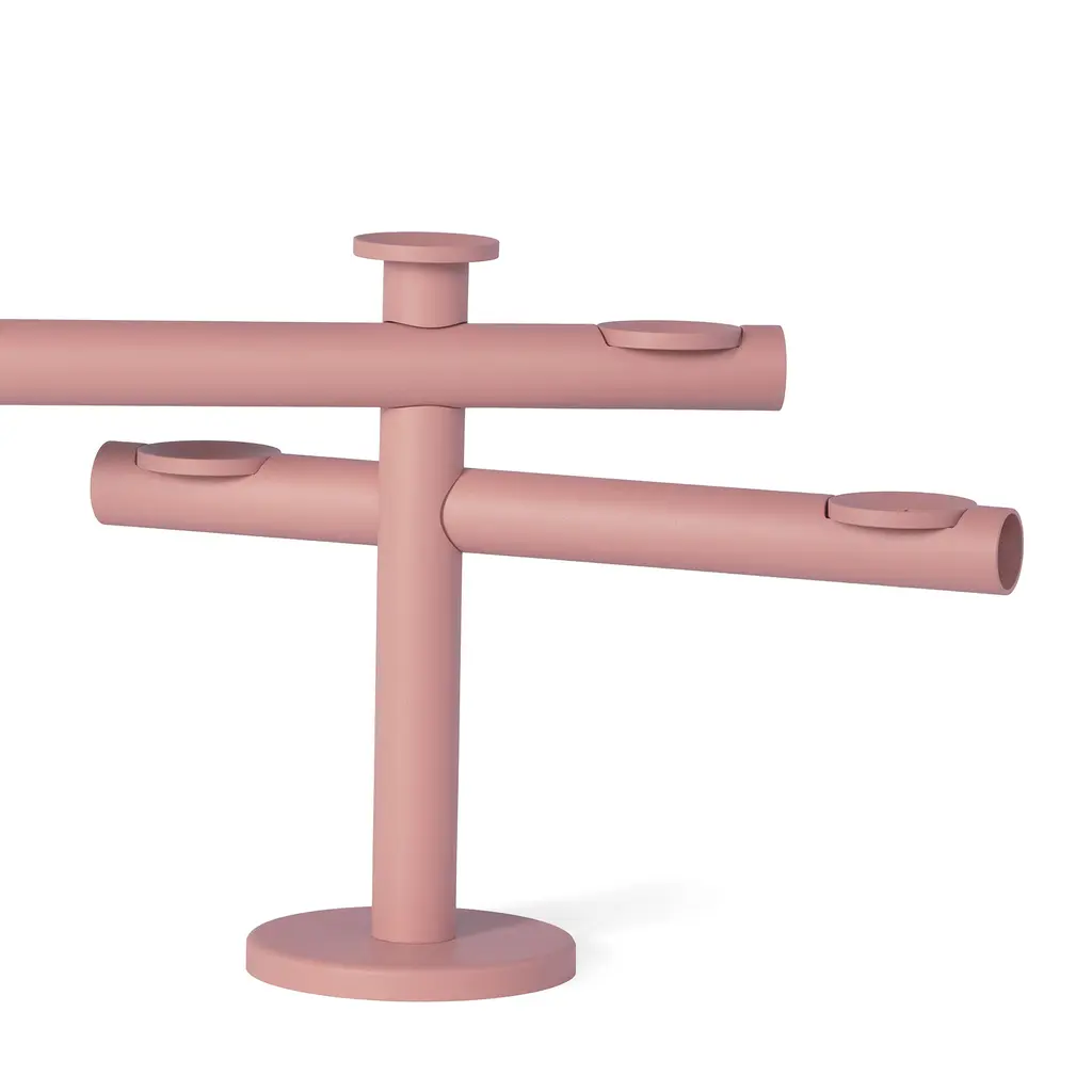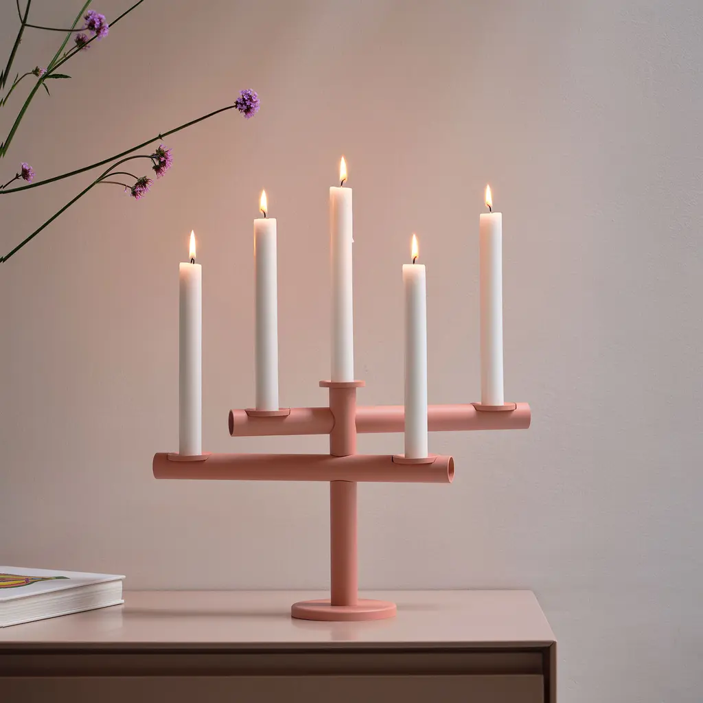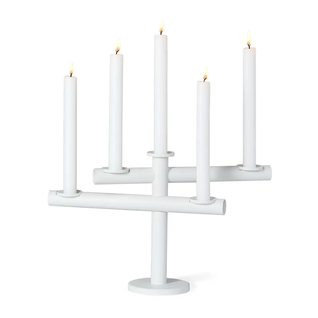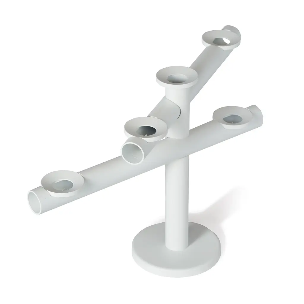 Set the mood and the dining table in style with Light My Fire. Created by Dutch designer Frederik Roijé, this modern candelabra references both the majestic allure of fairy tale candelabras and the warmth of an open flame candle. Made from solid steel with a powder-coated finish, Light My Fire features cylindrical elements that come together in a dynamic composition. The two slightly offset arms merge with the frame and can hold two and three candles, respectively. Drip rings catch the melted wax, so it doesn’t reach the table surface or the body of the candelabra. Perfect as a centerpiece for the dining table, Light My Fire also suits side tables and sideboards. Manufactured responsibly, every Frederik Roijé candelabra is made locally in the Netherlands.
