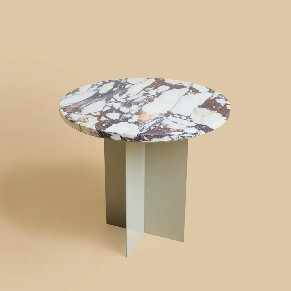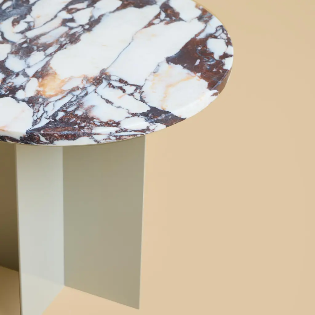 Light Steel Base Side Table With Round Calacatta Violet Top By Lebanto