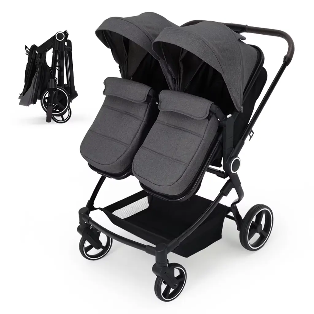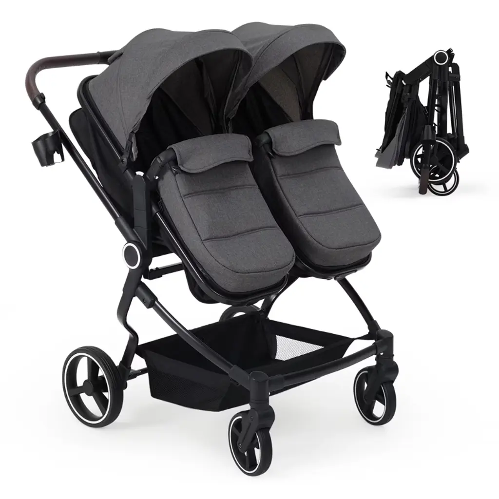 Lightweight Side-by-side Double Stroller For Twins With Compact Fold, High Landscape Seats, Adjustable Reclining Canopies, For Babies Toddlers