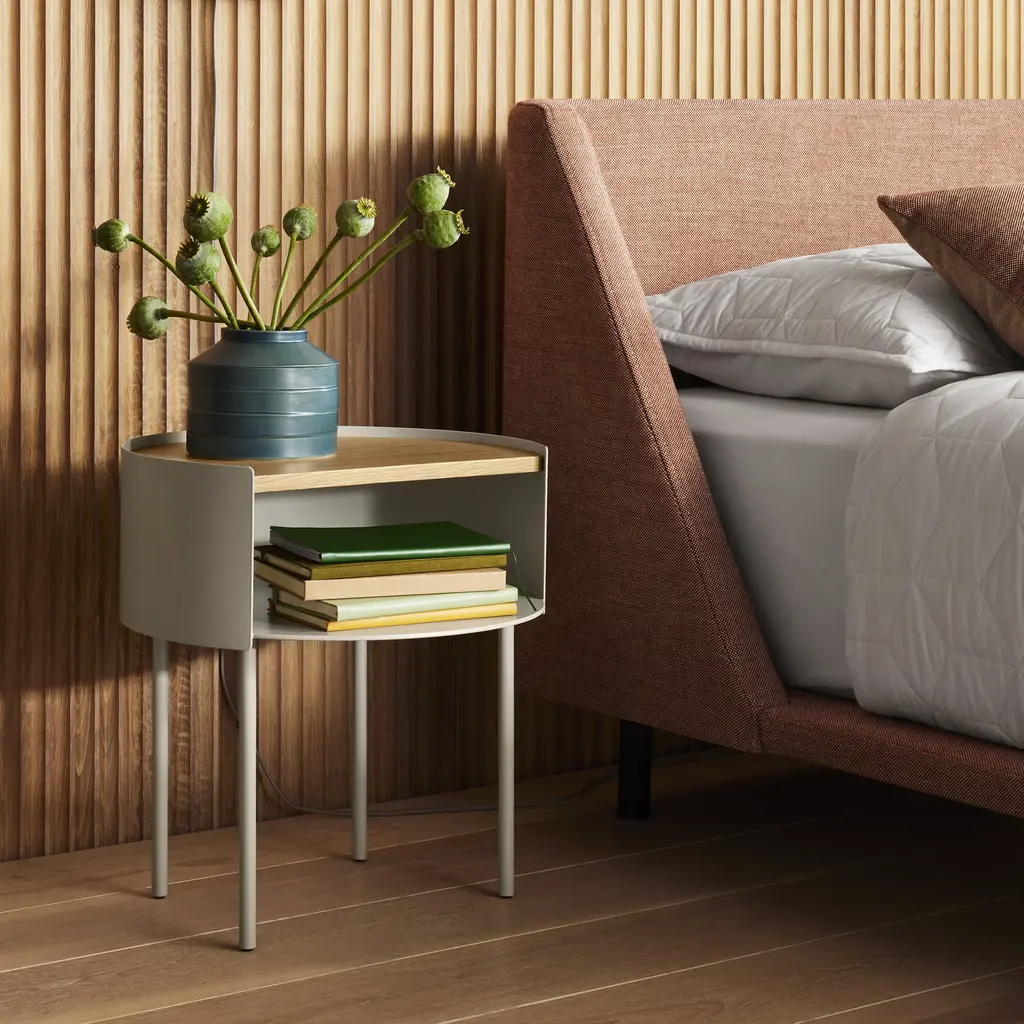 The Li'l Something Side Table by Blu Dot is a charming side table. Fashioned with a powder coated steel frame and a complimenting wood top, this eye-catching piece is at home in the entryway, beside the sofa, or in a small nook in the guest bedroom. Features