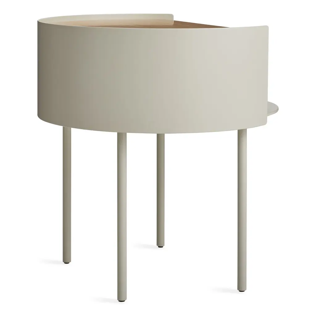 A demure biscuit of a steel table that features wood top surface and useful storage cubby that is ready for a quick stash or an artful display. Couldn’t your room use a Li’l Something?