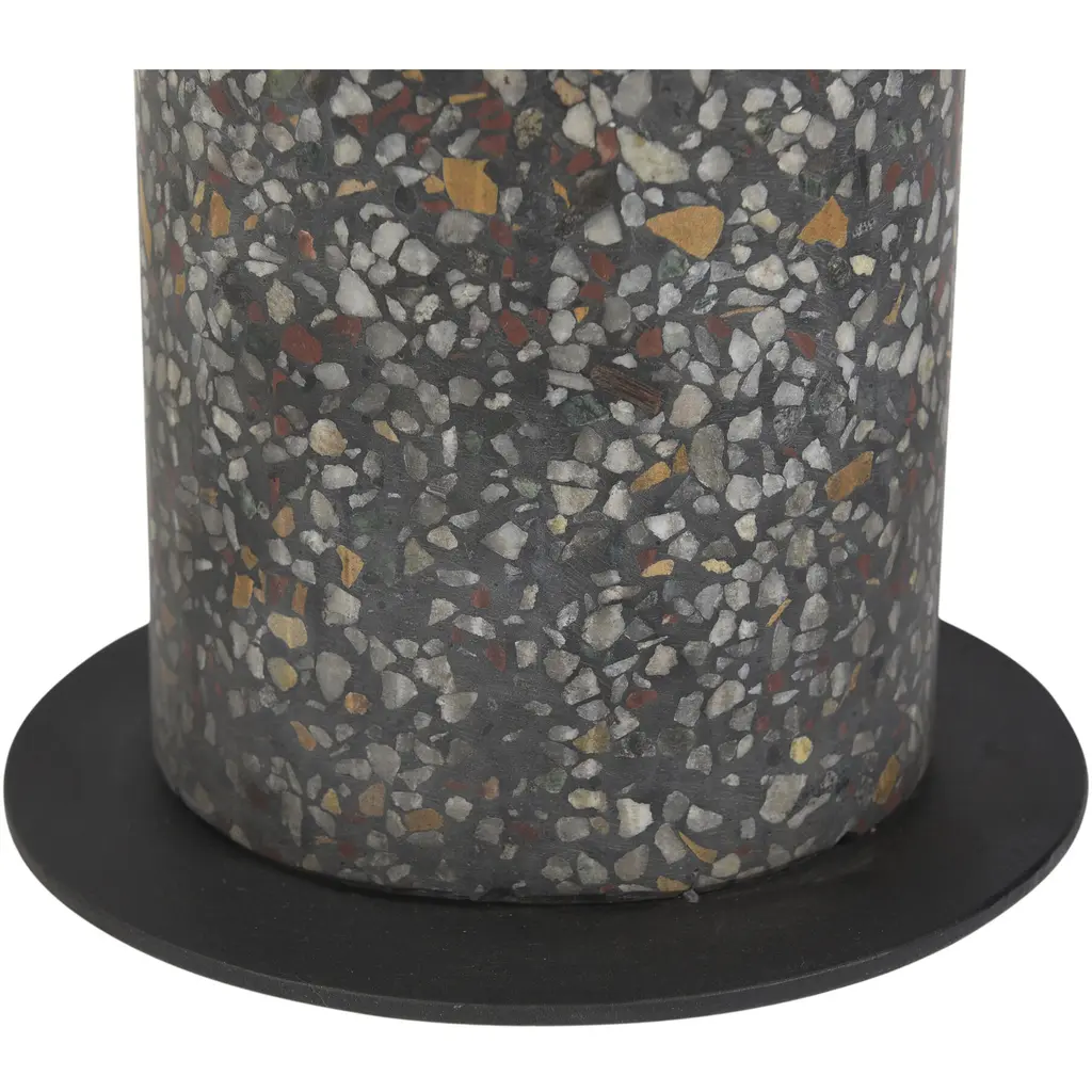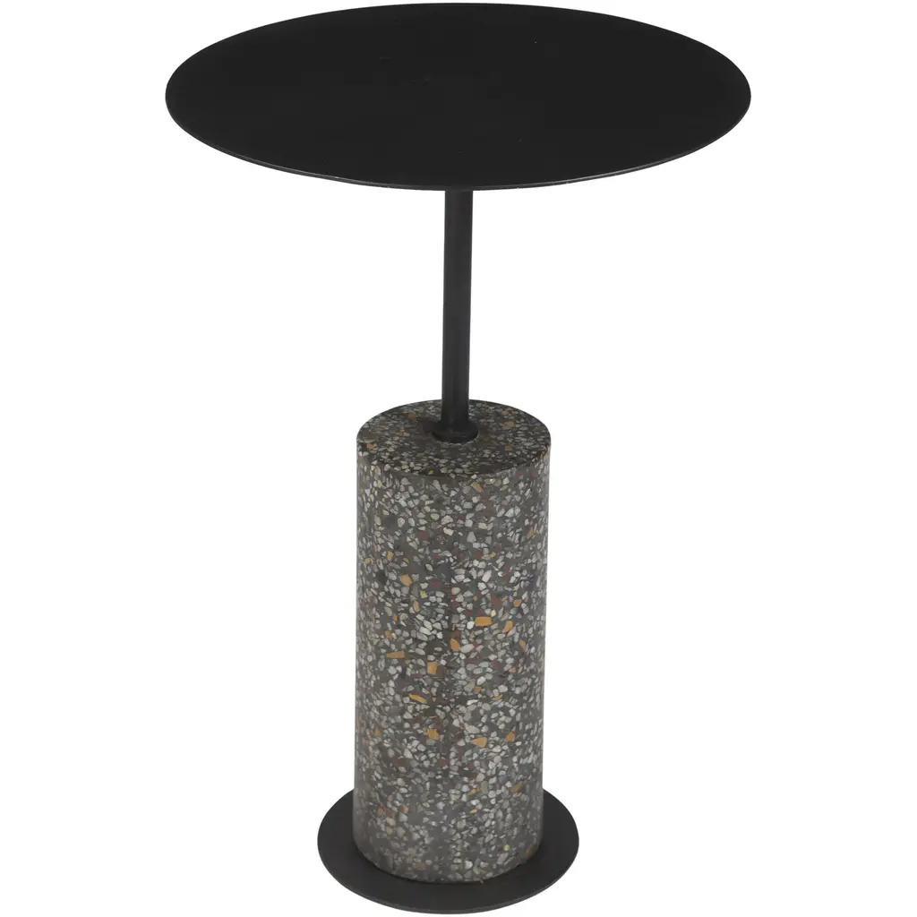 Gentle in nature, this piece is suited for adding a subtle layer to the living room. The Lillith accent table contemporary look comes from a clean matte-black finish, accompanied by a black terrazzo base. A focus on muted shades and minimal presentation adds a modern feel. Place the Lillith accent table with a darker shaded sofa for a sleek aesthetic.