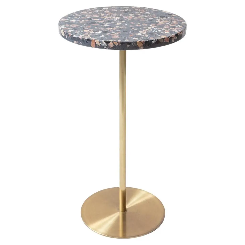 Gentle in nature, this piece is suited for adding a subtle layer to the living room. The Lillith accent table contemporary look comes from a clean matte-black finish, accompanied by a black terrazzo base. A focus on muted shades and minimal presentation adds a modern feel. Place the Lillith accent table with a darker shaded sofa for a sleek aesthetic.