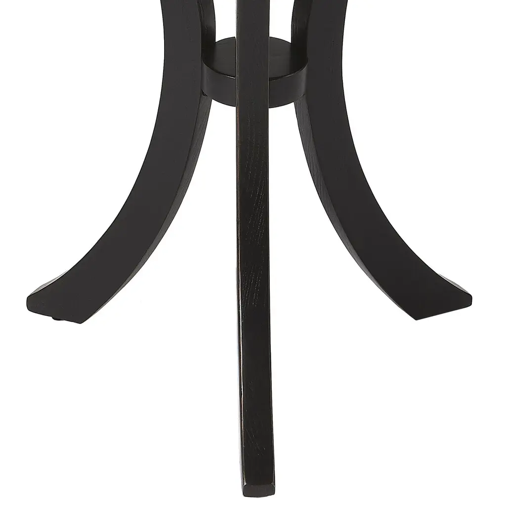 This side table combines contemporary flair with Art Deco inspiration, characterized by three elegantly curved legs connected by a circular base. Crafted from selected solid woods, wood products, and cherry veneers, the table's smooth, satin-stained finish and subtle edge details highlight its warm, rich grain and timeless design, making it a sophisticated accent for any space.