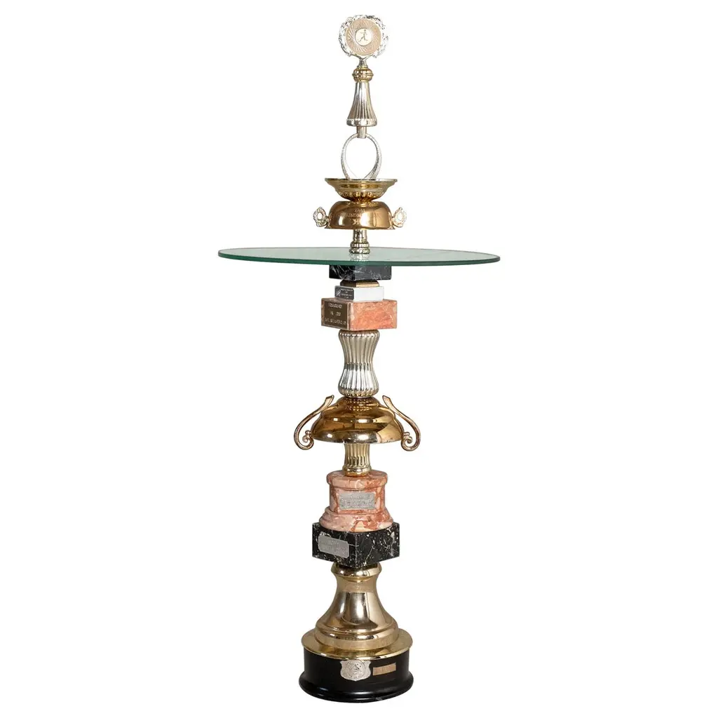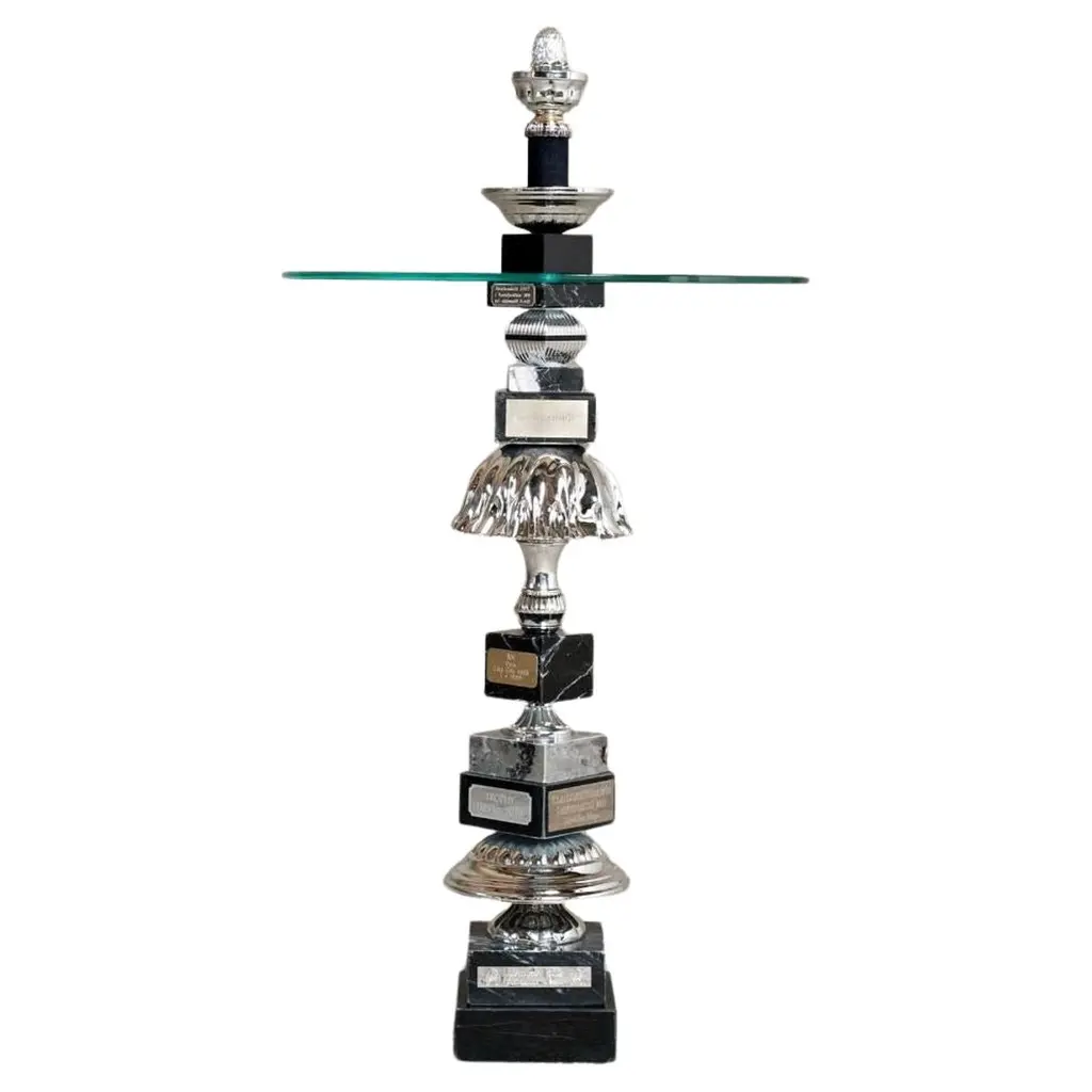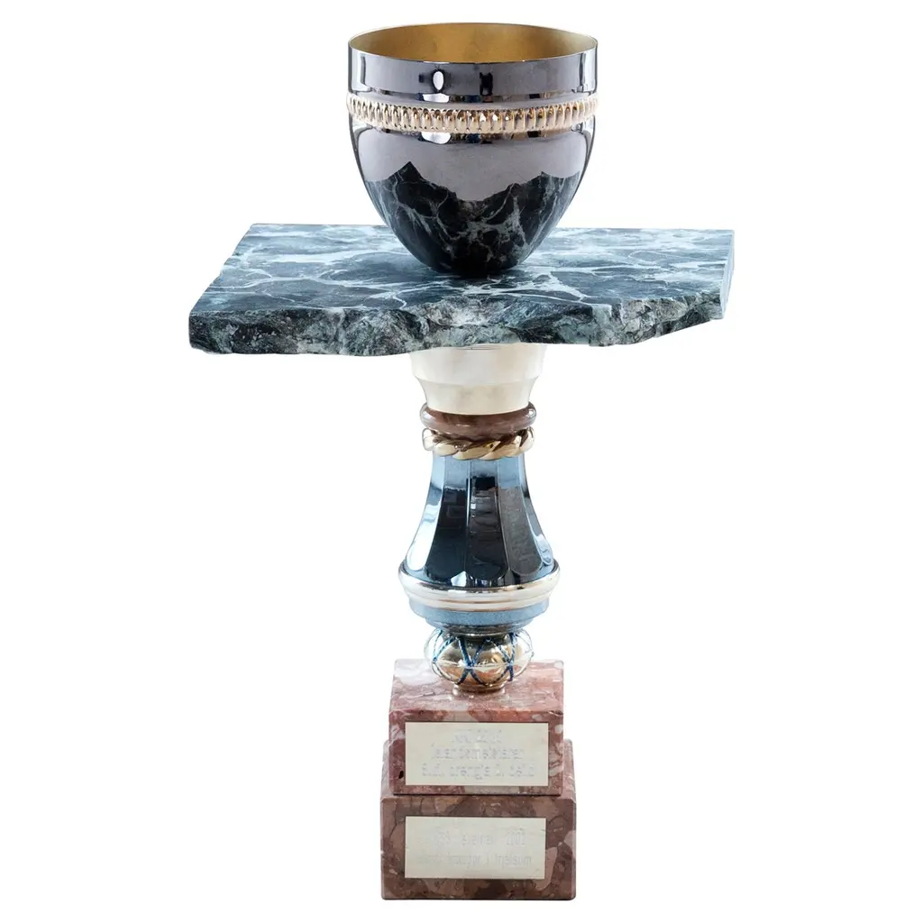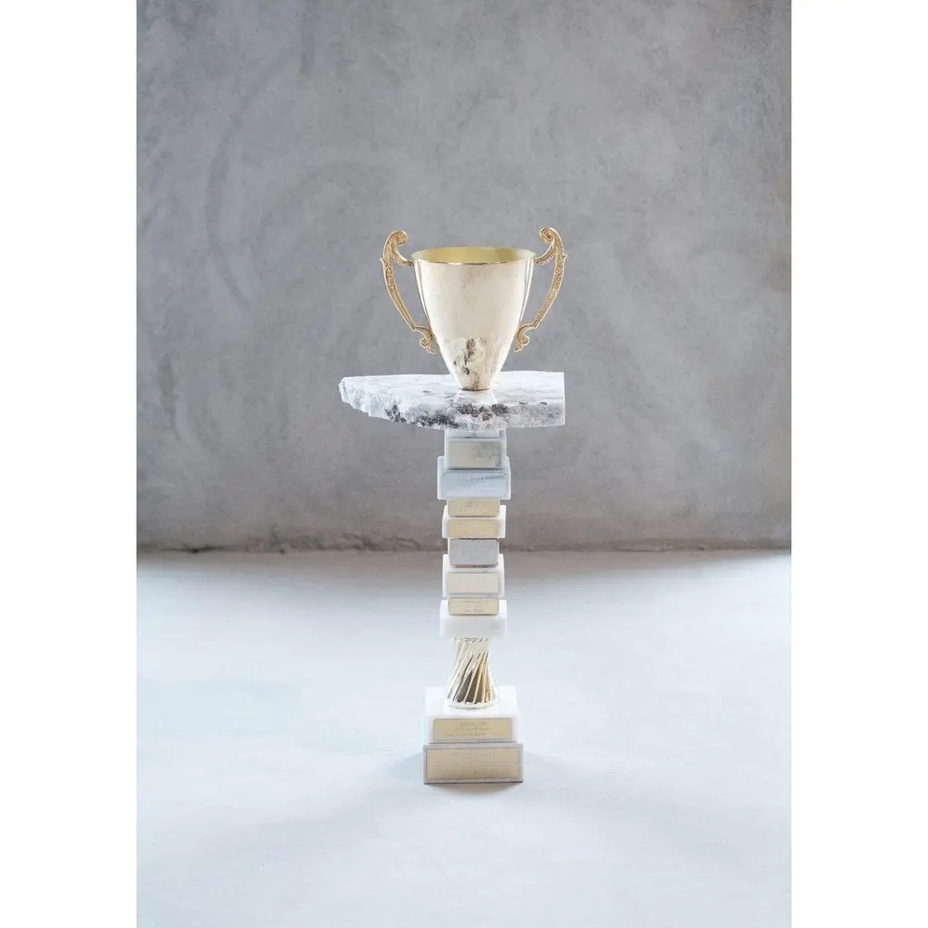 The lily flower Pot by FléttaDimensions: 54.5 x 40 cmMaterials: white marble, goldTrophy is a collection of tables, lights, flowerpots and shelves made of old trophies collected from athletes and sports clubs in Iceland. Trophies are a part of big moments in people’s lives, achievements, and memories. They tell a story of countless hours and strenuous exercises. They are made for a moment, when they are lifted up in triumph.Designers Birta Rós Brynjólfsdóttir and Hrefna Sigurðardóttir founded Flétta in 2018 but have been working together since 2014. Both with backgrounds in product design from Iceland University of the Arts, they bring a high degree of conceptual and process innovation to their works using mundane or often overlookedproducts and materials. Their practice revolves around responsible design, utilizing reused materials and local production with evident respect for craftsmanship and storytelling.
