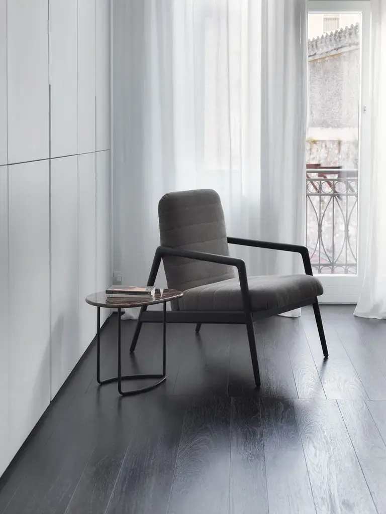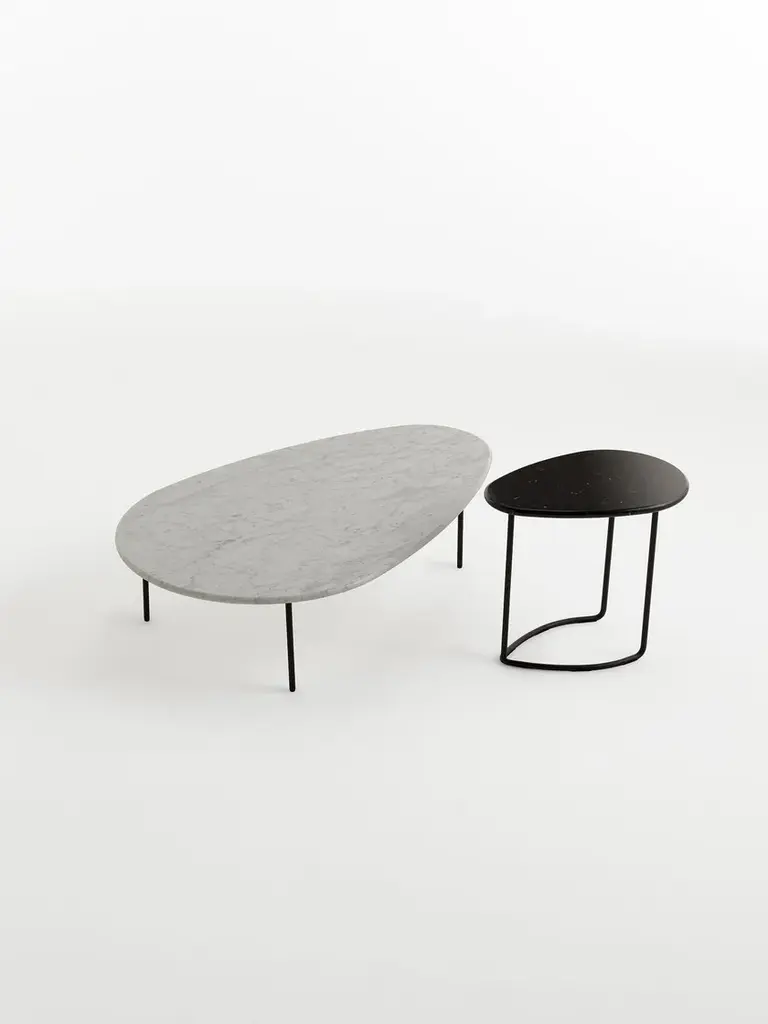 LILY is inspired by the architecture of the water lily plant. It is a system of planes and surfaces that operate at various heights to offer different functions. When Lily is mixed with other members of its family, the spatial effect can produce a unique hybrid interaction through the layering of planes and surfaces. MATERIALS:Black painted metal structure. Marble top.