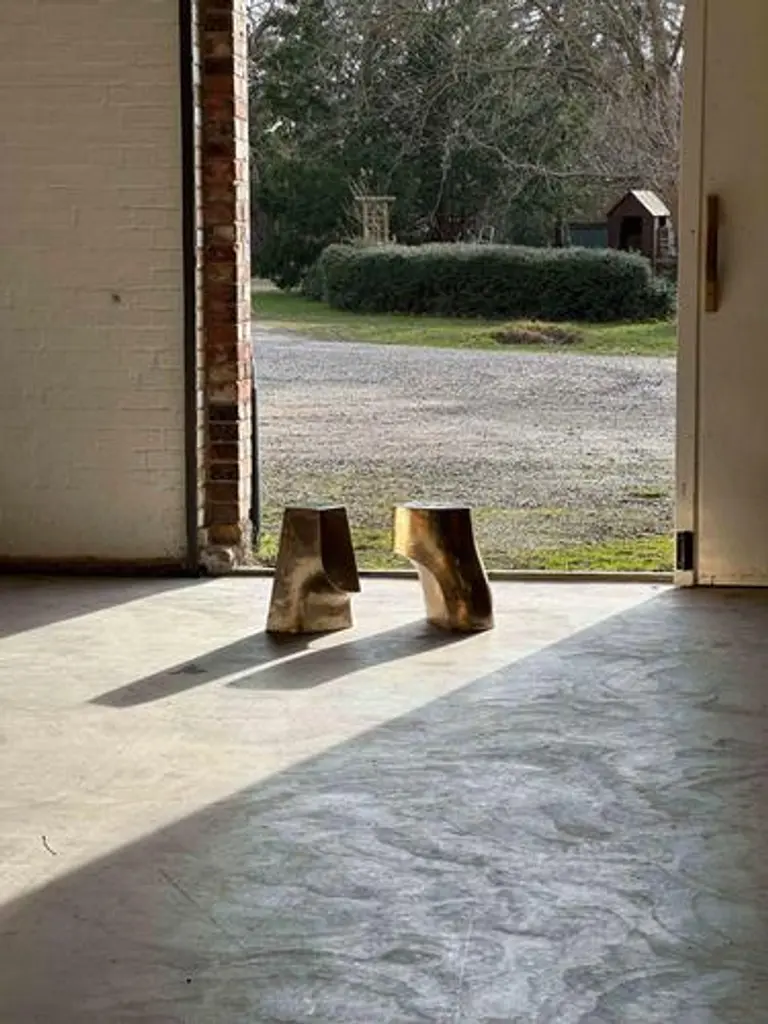Set of 2 limited edition lost wax casted bronze palm side tables by vogel studio limited edition of 10 + 1 pieces. Dimensions: table i: d 23 x w 39 x h 41 cm. Table ii: d 24 x w 30 x h 43 cm. Materials: cast bronze. The palm series is limited to 10+1 pieces per table and is cast by a small art foundry using the lost wax technique. The bronze is a classic art foundry bronze. The tables can be supplied in different finishes, from matt to polished, and are also individually patinated. Colors can range from golden bronze to dark brown/black tones.