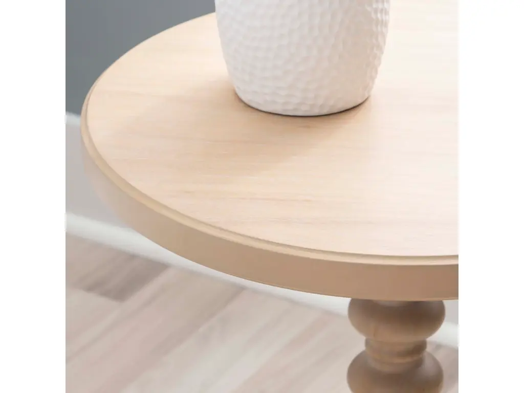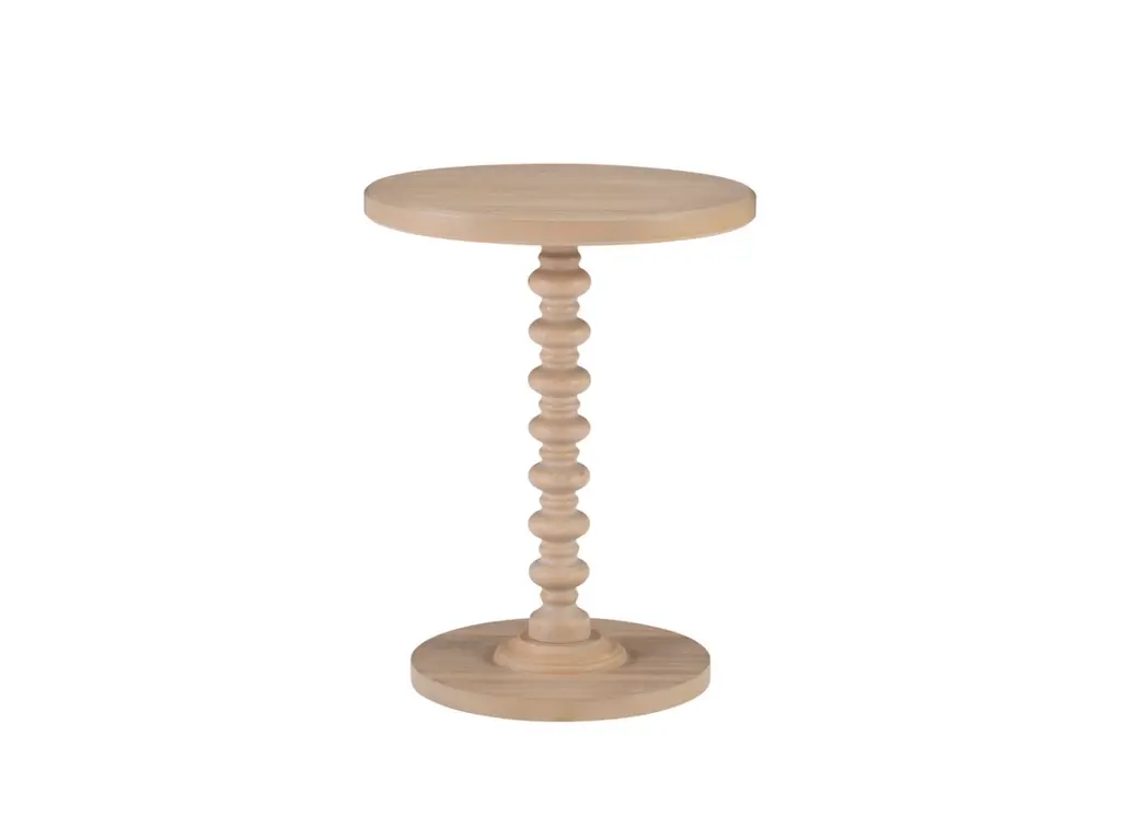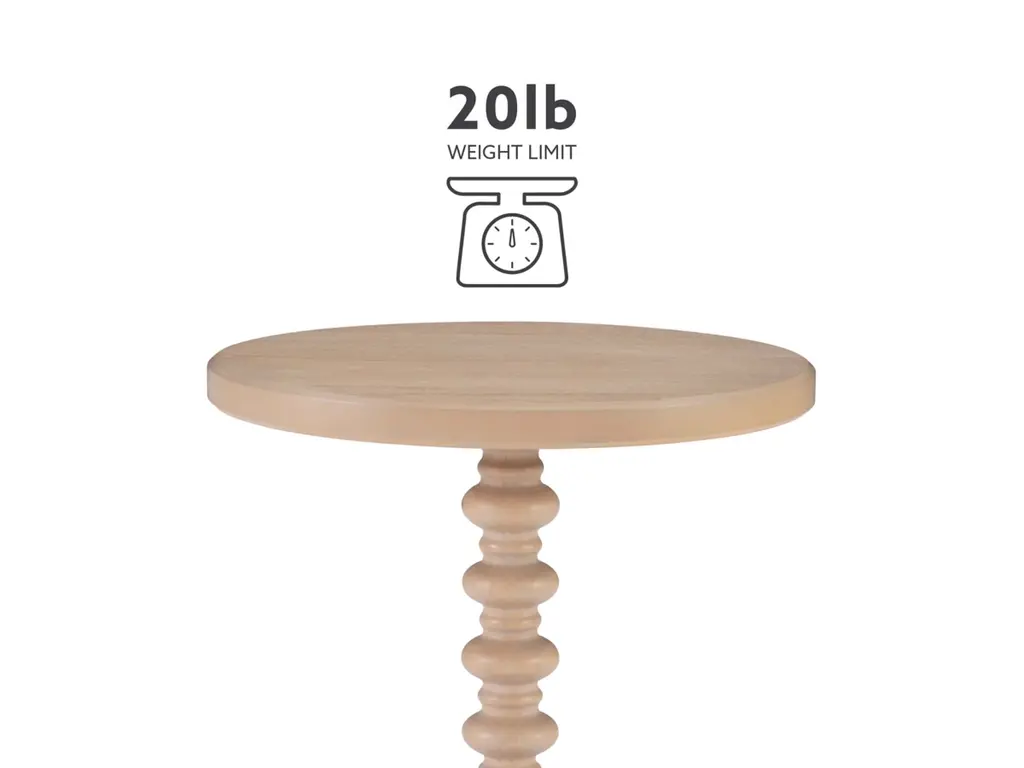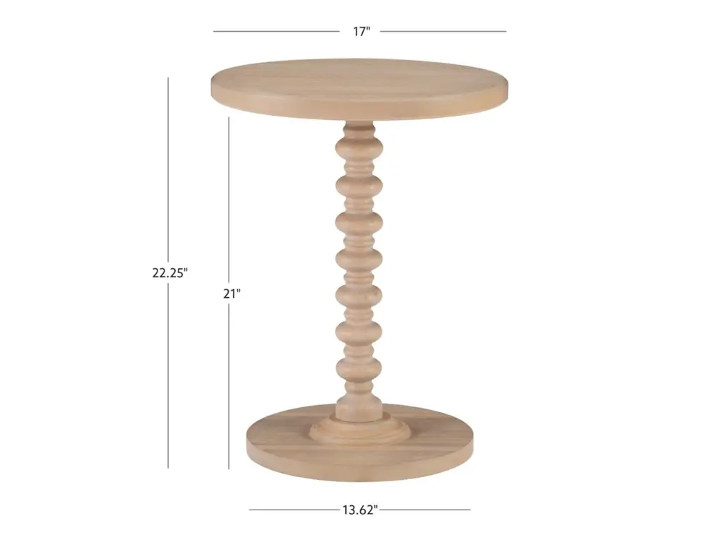 A gorgeous accent table in a natural wood finish that will help liven up your space by adding a fun bit of flair. Made from solid wood, it features a sturdy pedestal base with a turned spindle that is complemented by the clean lines of the round tabletop. This accent table looks just right next to your favorite living room armchair, or even serving as a cute table in the entryway. There's plenty of room on its 17-inch diameter surface for a framed family photo, a scented candle and your favorite magazines.