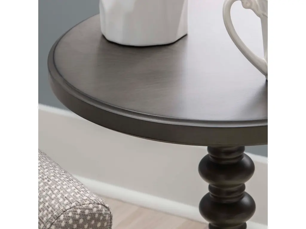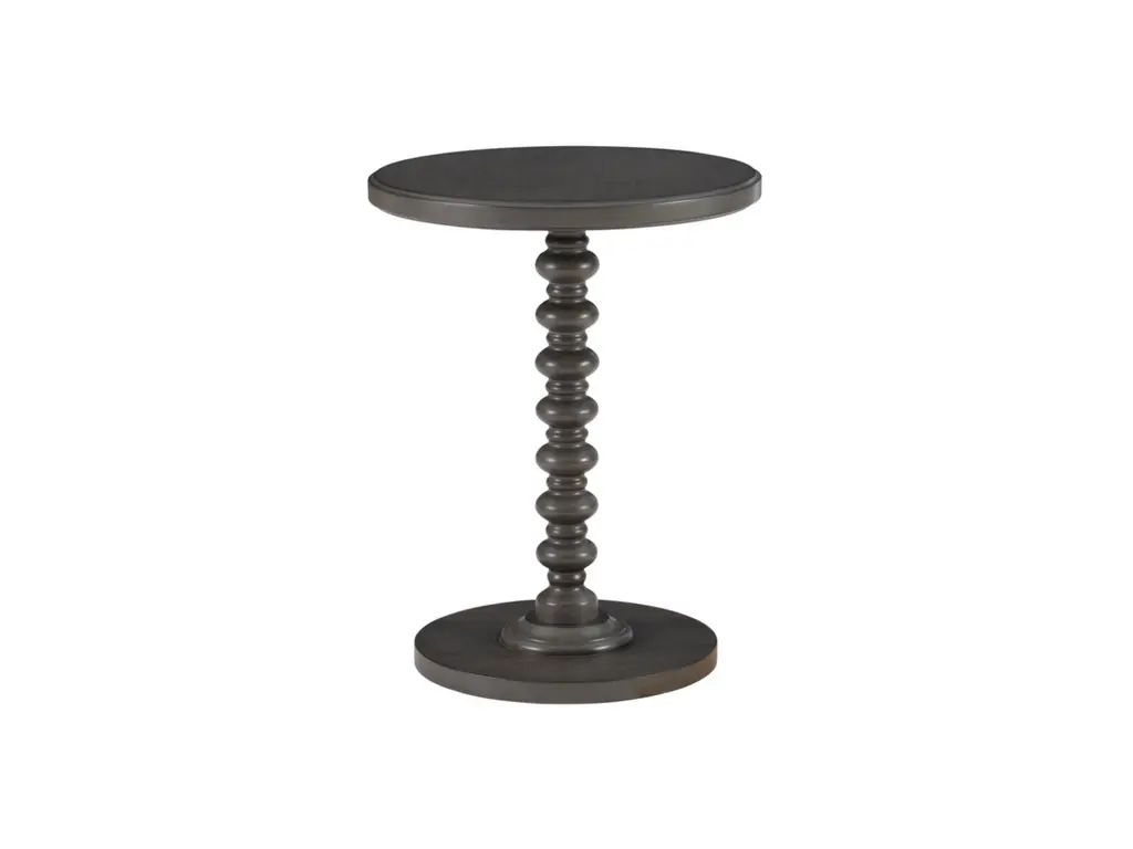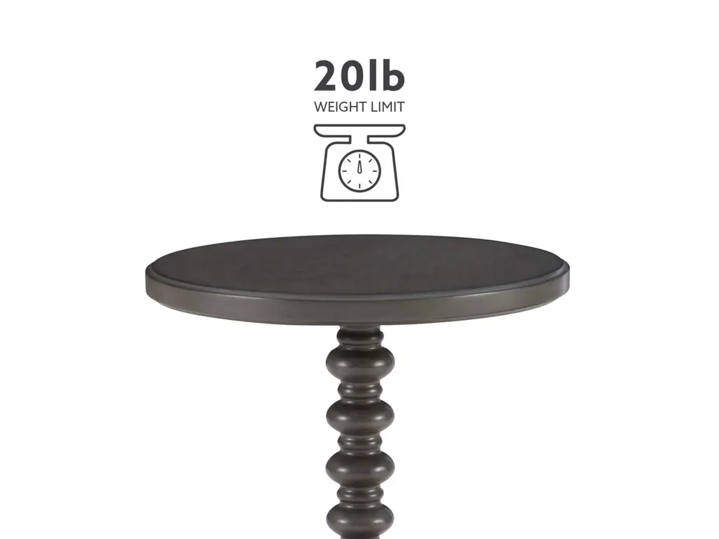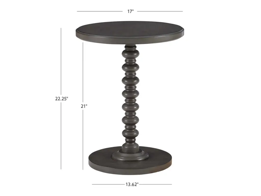 A gorgeous accent table in a rich dark grey color that will help liven up your space by adding a bit of elegance. Made from solid wood, it features a sturdy pedestal base with a turned spindle that is complemented by the clean lines of the round tabletop. This accent table looks just right next to your favorite living room armchair, or even serving as a cute table in the entryway. There's plenty of room on its 17-inch diameter surface for a framed family photo, a scented candle and your favorite magazines.
