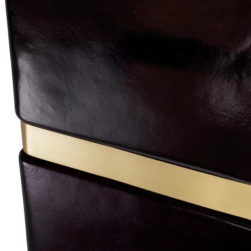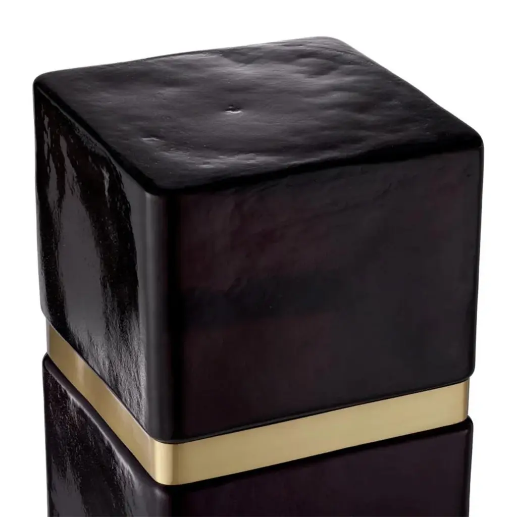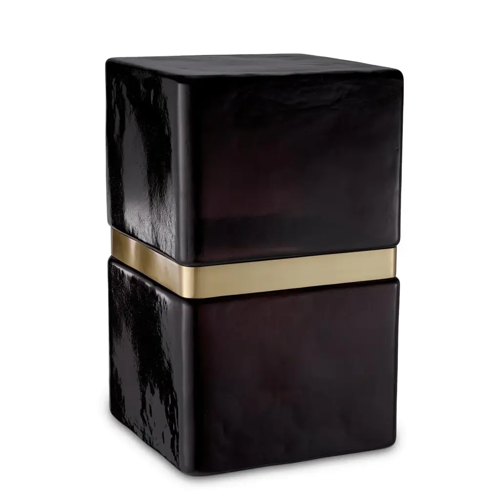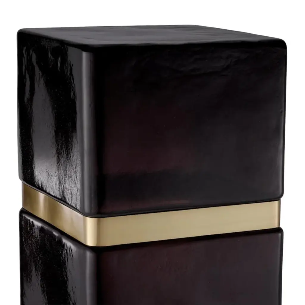 Side Table Linxe made with handmade glassand with a brass trim in antique finish.
