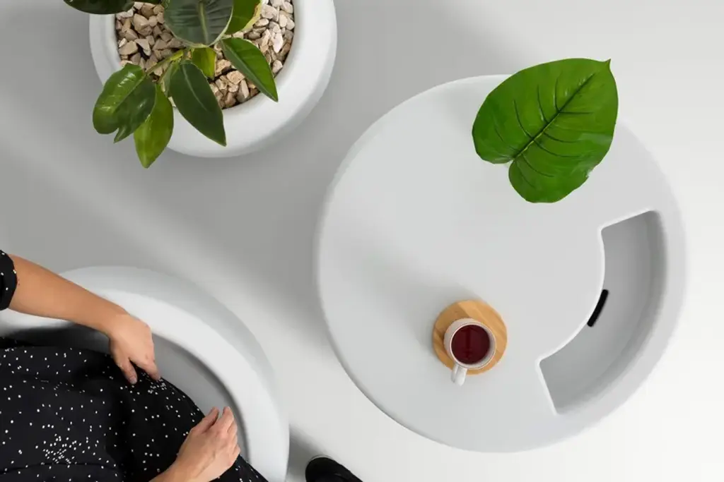With its pop look and spirit, Lipstick is a collection with a very fun, cheerful personality. Its design is inspired by an everyday object: a lipstick. This outdoor armchair and coffee table set has a very striking appearance that is ideal for creating a laid-back, bold atmosphere in your outdoor space, with high doses of style.Made of rotation moulded 100% recyclable polyethylene.Colours: white, pink, red, grey, anthracite.