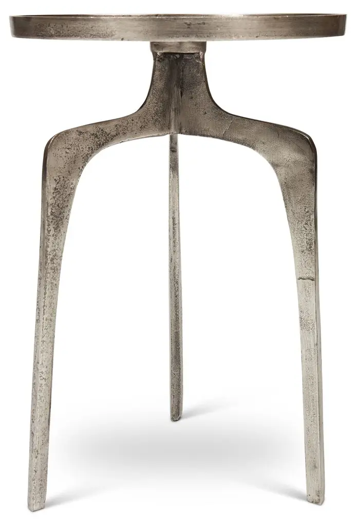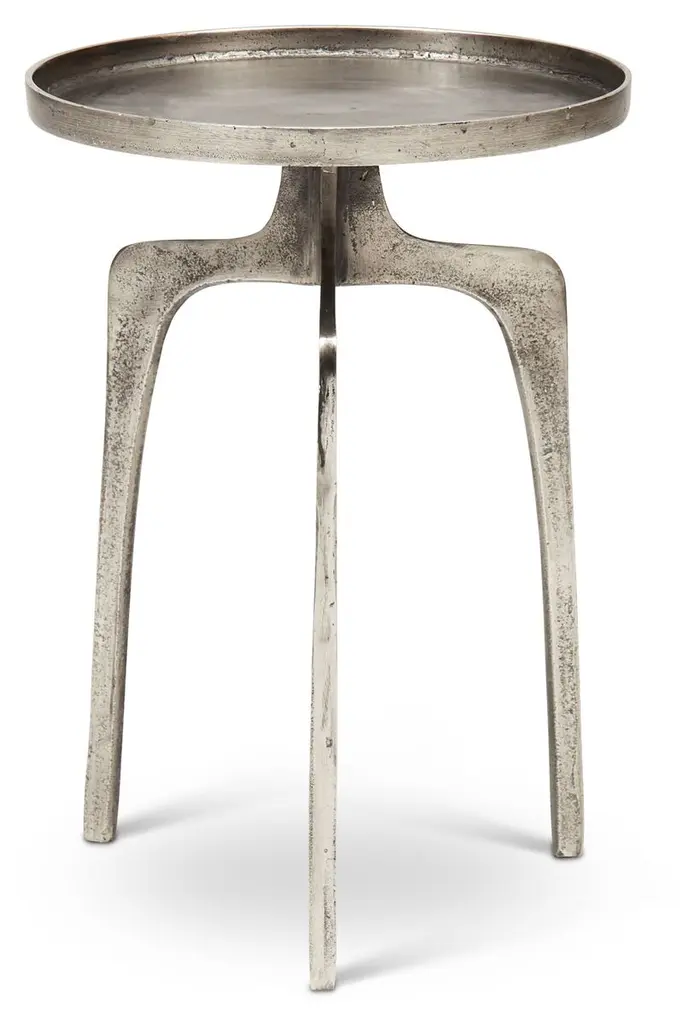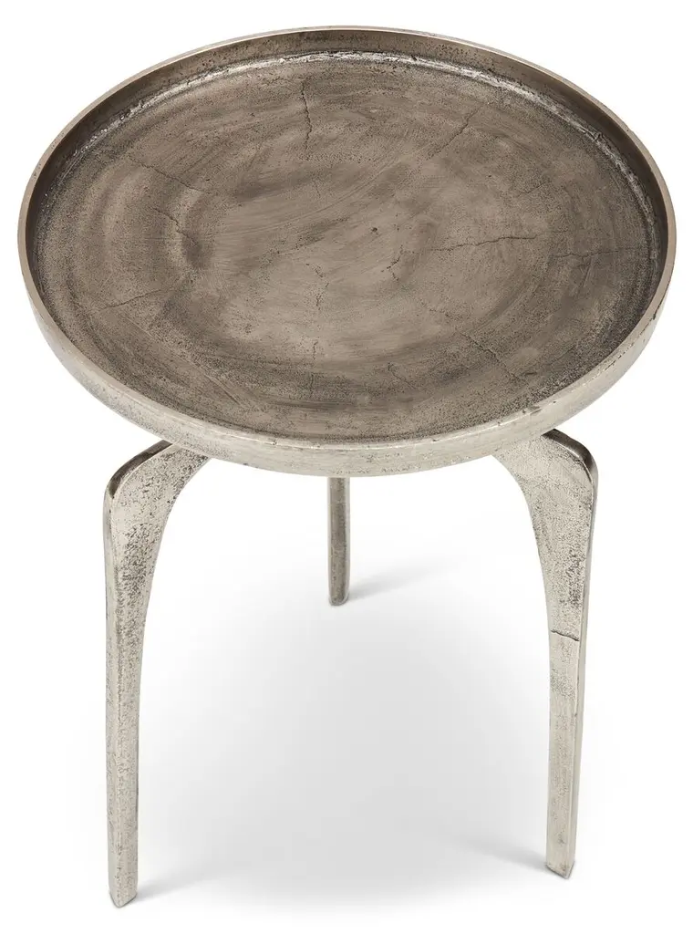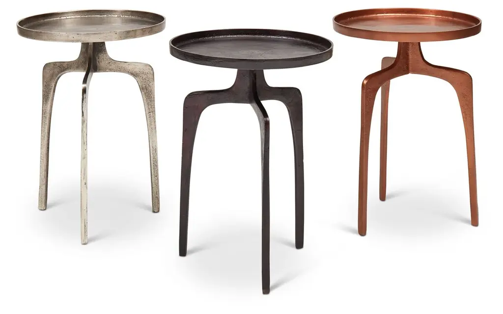 The perfect accent piece, Lisette End Table is a modern side table with a lipped edge for practical use. It features an elegant three-legged design made from reclaimed aluminum. Your choice of metal finishes offers the opportunity to either blend into the background or pop out in style.