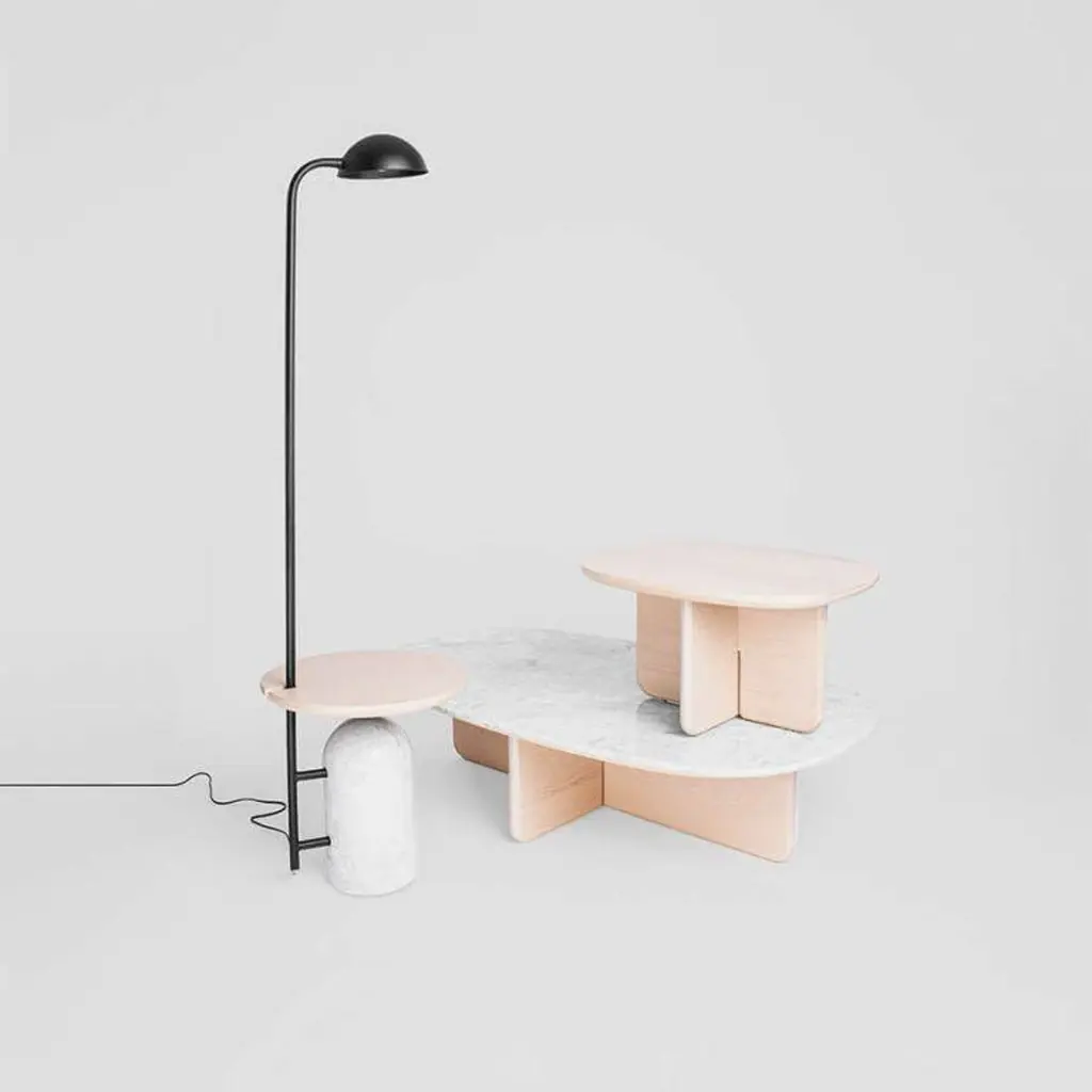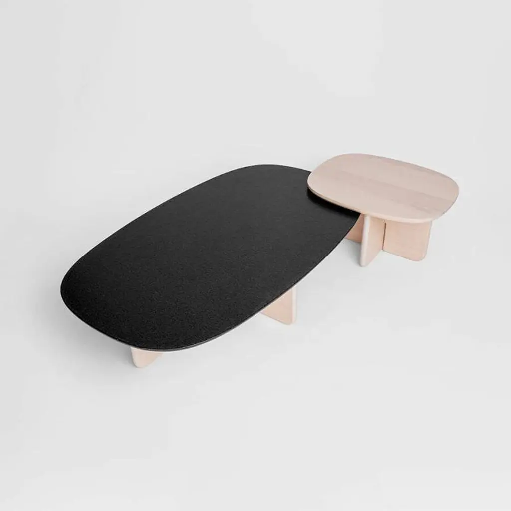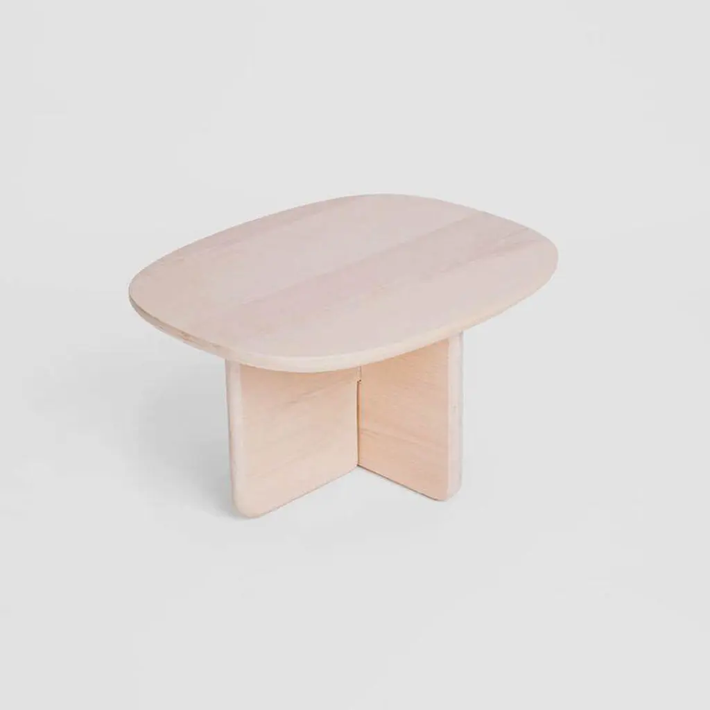 Our Lítica side table, a piece inspired by the earliest human tools known as choppers from the Lithic period.Crafted from solid beech wood, this sculptural table is composed of three interlocking elements, shaped through precise cuts and hand-carved detailing, assembled seamlessly without the use of additional hardware.