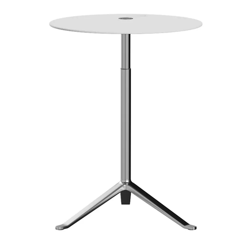 The Little Friend Adjustable Table from Fritz Hansen blends Scandinavian and contemporary styles. It was designed by Kasper Salto and has a polished aluminum frame with subtle curves at the ends of its legs for balance and stability. Atop the framework rests a circular tabletop comprising compact laminate. The round motif continues at the center of the table, where the framework is smoothly crowned, remaining visible for an artistic touch. The table’s height is adjustable for your convenience.
