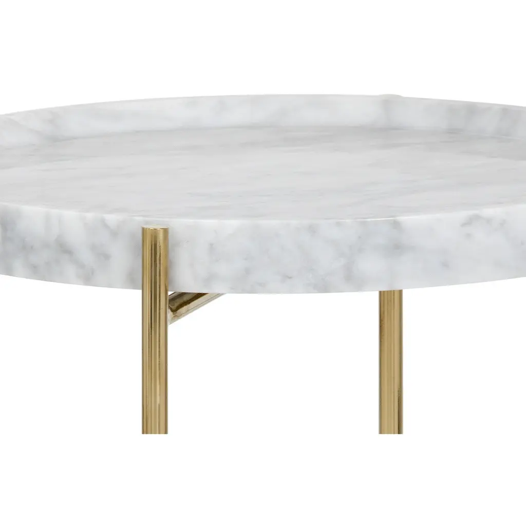 The Liv side table is beautifully crafted with a marble tray top and elegant gold steel base. Can be used as an end table or a small nightstand. Stocked in black and white marble. As marble is a natural material, unique veining, pitting, fissures, micro-cracks and colour variations are all characteristics that add to the uniqueness and beauty of each piece.