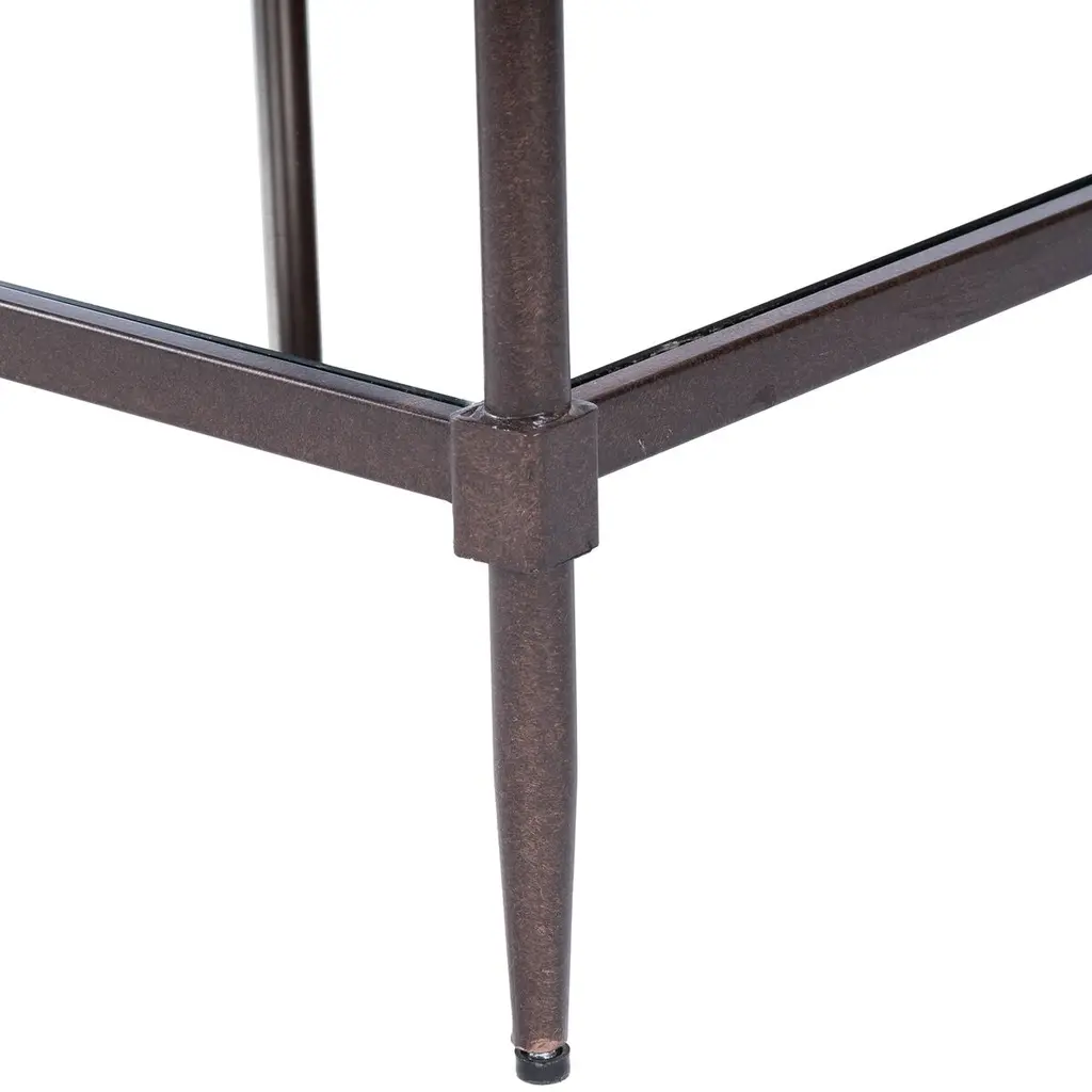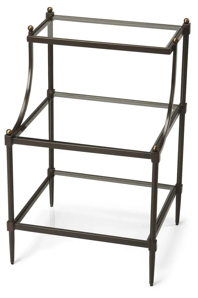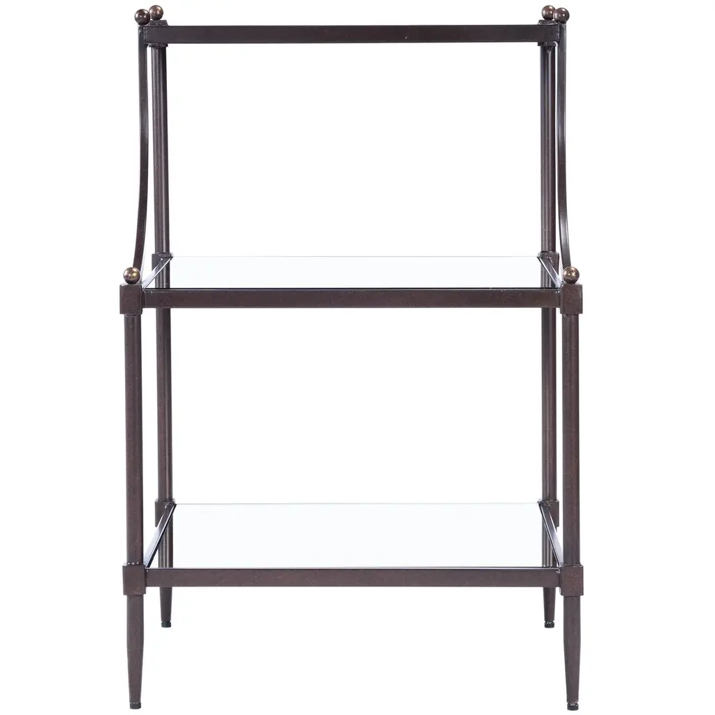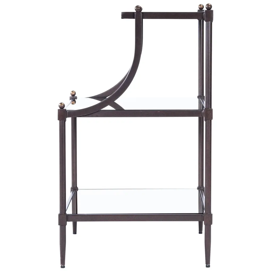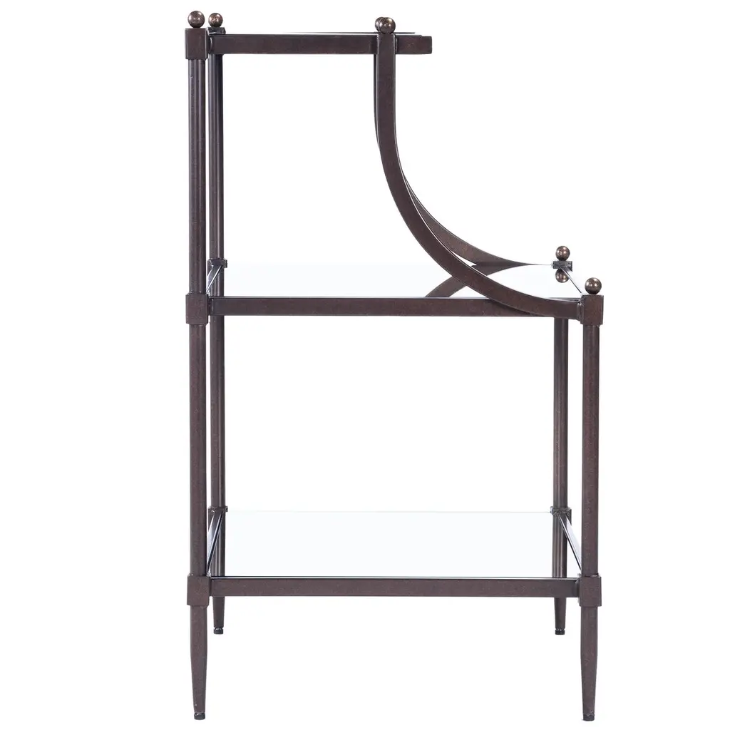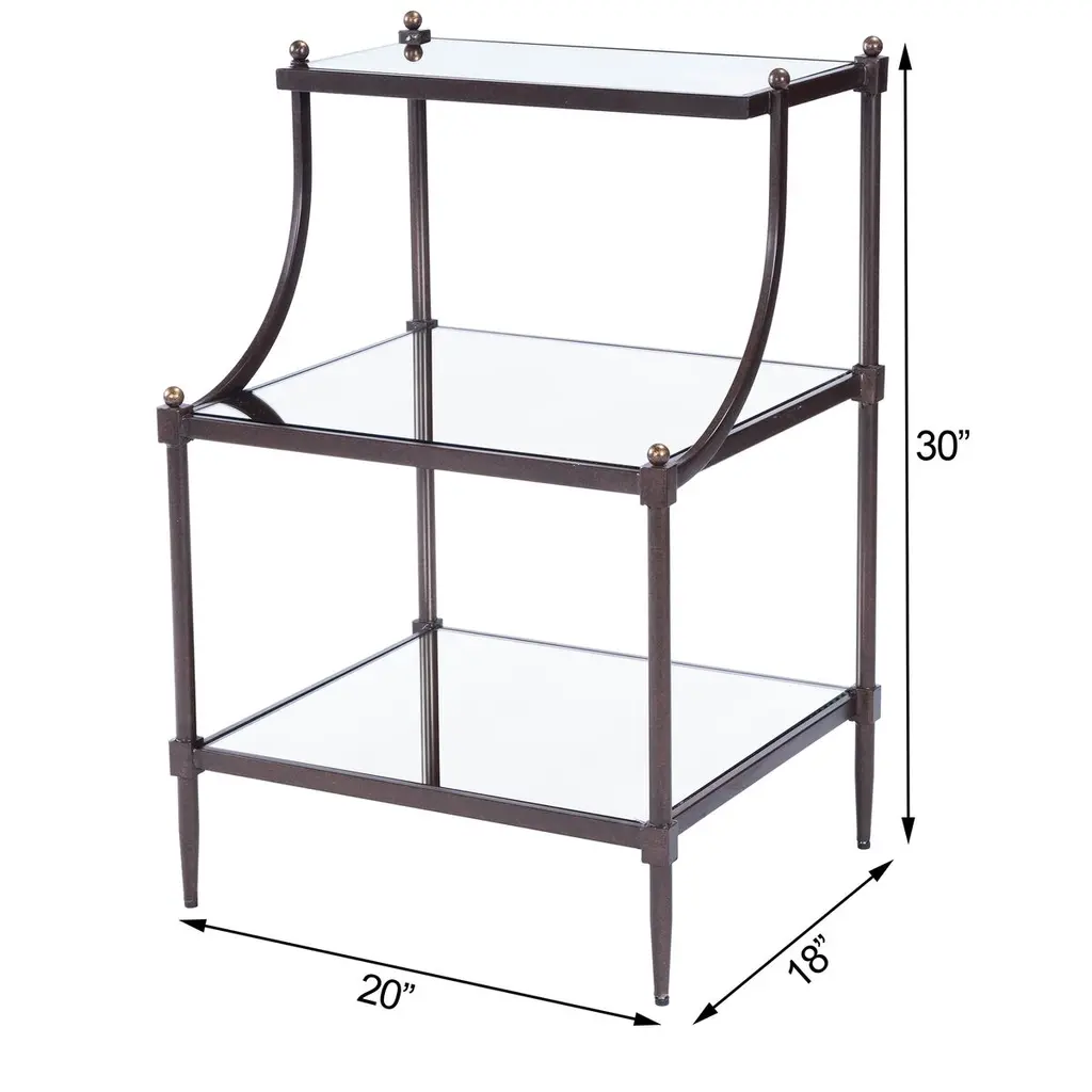Embrace the allure of timeless elegance with this transitional-styled table, where romance meets functionality. Its exquisite metal frame construction whispers of strength and grace, while the shelves on each tier reflect a world of dreams and possibilities. This table is a harmonious blend of classic charm and modern sophistication, inviting you to create a space filled with love and beauty.