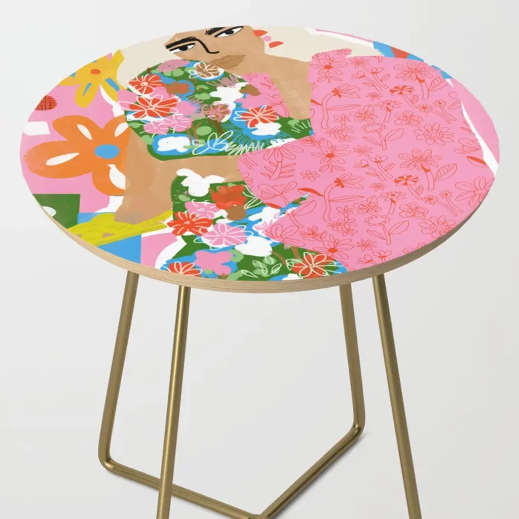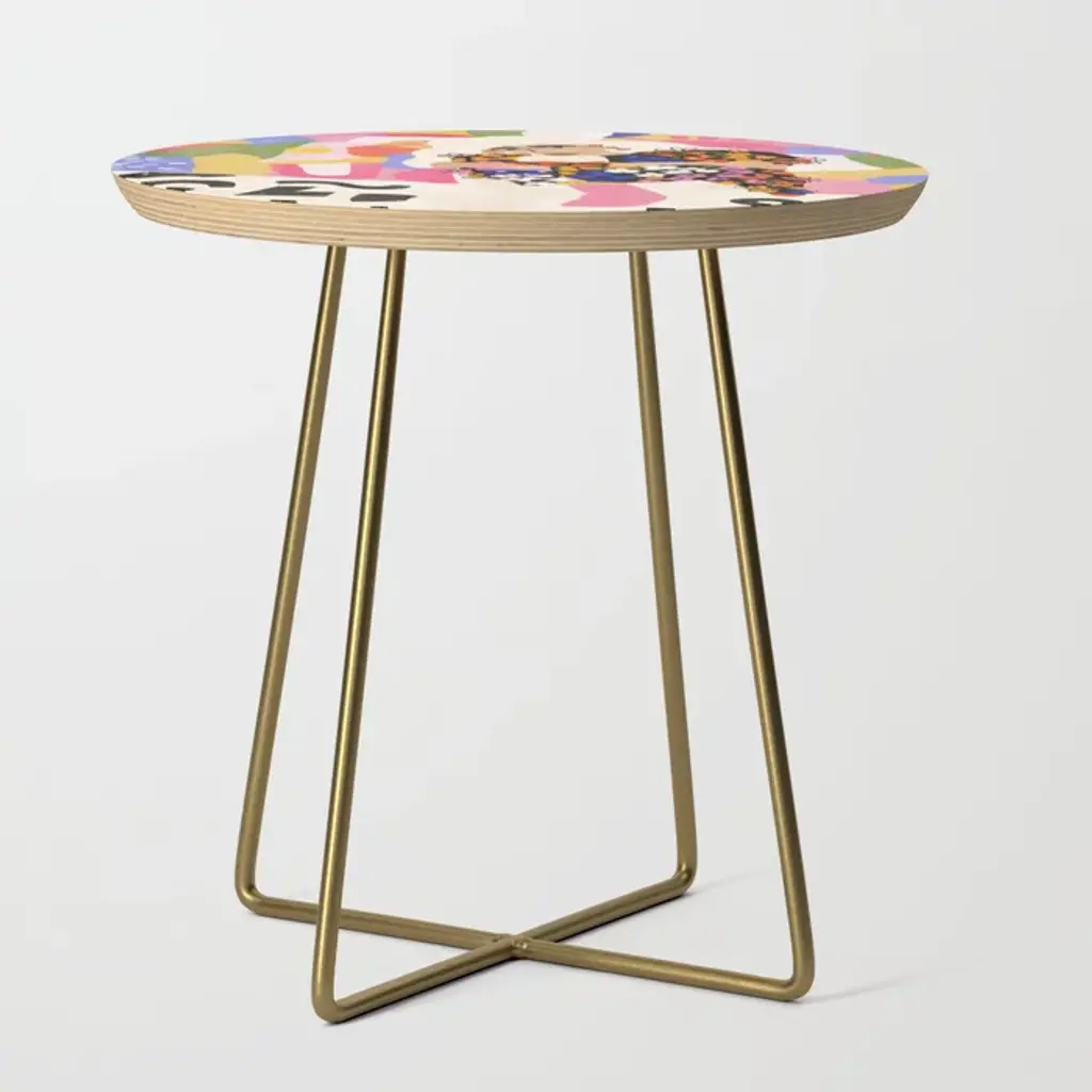 From sideshow to show-stopper, our side tables will be a stunning modern accent to your space. Selecting from our wide array of artist's designs printed with a satin finish on birch wood, you’ll take any room from zero to a hundred. Available in a square or round table top, and black or gold leg colors.Square: 19" x 19" x 19" (H)Round: 19" (diameter) x 19" (H)Baltic birch table top with beveled edgeHigh quality print with satin finishSteel legs available in black or goldAssembly requiredFor more info click here.SHIPPING: Items are made to order and typically ship within 3-4 business days. Click here for more information about delivery options.Furniture sales are final. Click here for more information on returns.
