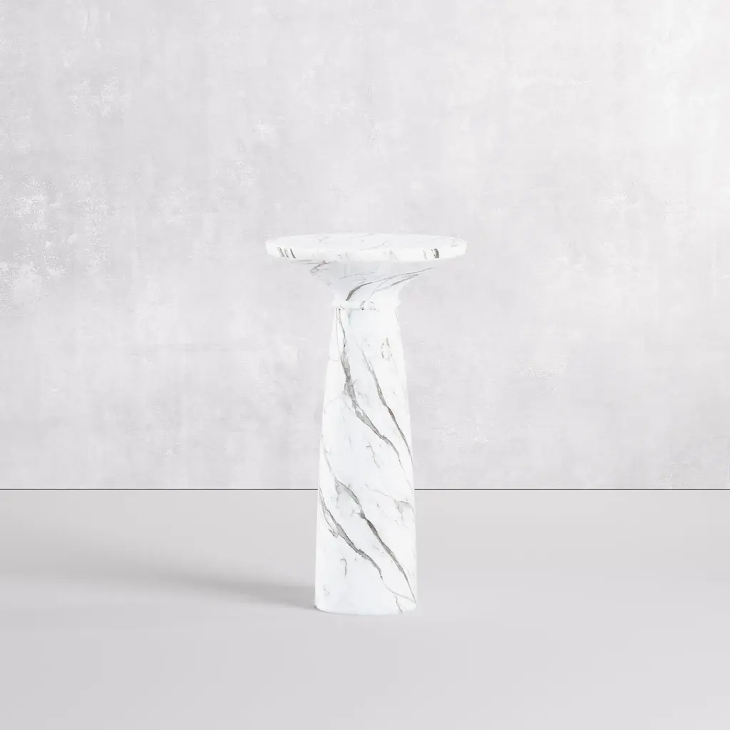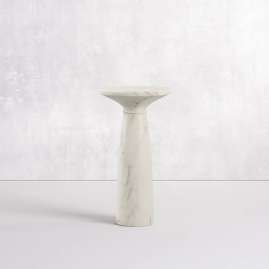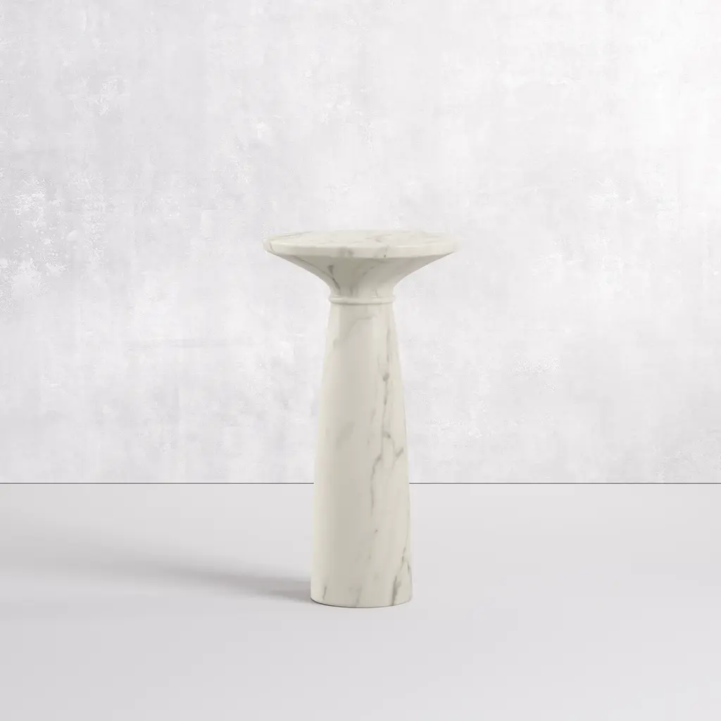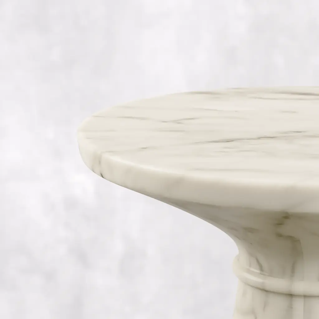 Our Livorno side table is made of pure marble in a curved, carved form. The wide base and round surface are a soft contrast to the natural stone. Add organic luxury to your home with this Italian-inspired accent piece. Place our Livorno side table in your living room, foyer, or high-end commercial space. Dimensions: 12.0''W x 12.0''D x 22.0''H Tear Sheet