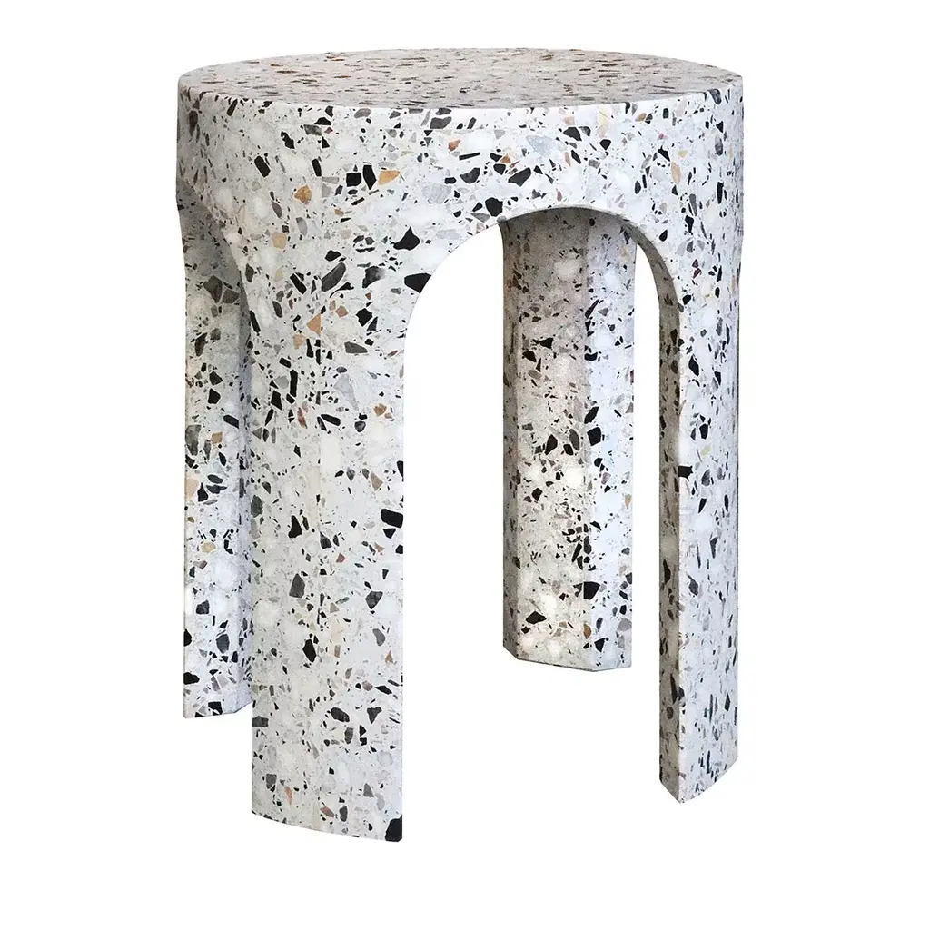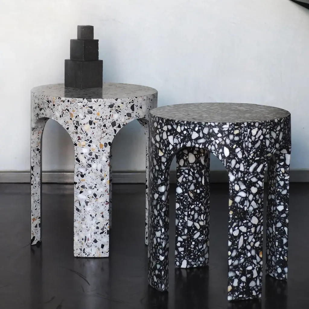 Traditional Italian architecture meets contemporary design in the Loggia series. Designed by Matteo Leorato for Portego, Loggia re-interprets the age-old covered terrace of Italian houses and pallazzos as furniture. The designs are fresh as well as influenced by the clean lines of ancient Greco-Roman architecture. Similarly to traditional loggias, which often feature a series of supporting columns, these designs boast pillars reminiscent of architectural elements. To make the coffee tables and stools, the designer chose a traditional material: terrazzo. Here, the speckled marble and resin blend doesn’t pave the floors of a grand palace, but becomes a three dimensional object. The Portego Loggia series comes in dark and light color palettes.