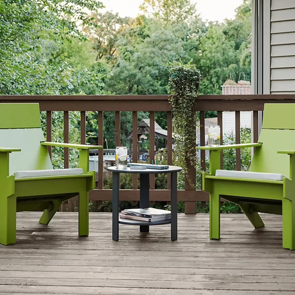 Cap off your comfortable seating arrangements with the clean and ultra-convenient Lollygagger Outdoor End Table from Loll Designs. It’s a sustainable, thoughtfully crafted piece made in a high-density polyethylene material comprised of 104 reclaimed milk jugs. Harsh rain, snow, or the sun’s rays are walks in the park for this strong, UV-resistant material. Pulled up next to your chair, this table satisfy with a tall tabletop and a bottom shelf for convenient storage. Sharp rectangular legs frame the piece, defining its handsome retro-futuristic styling.